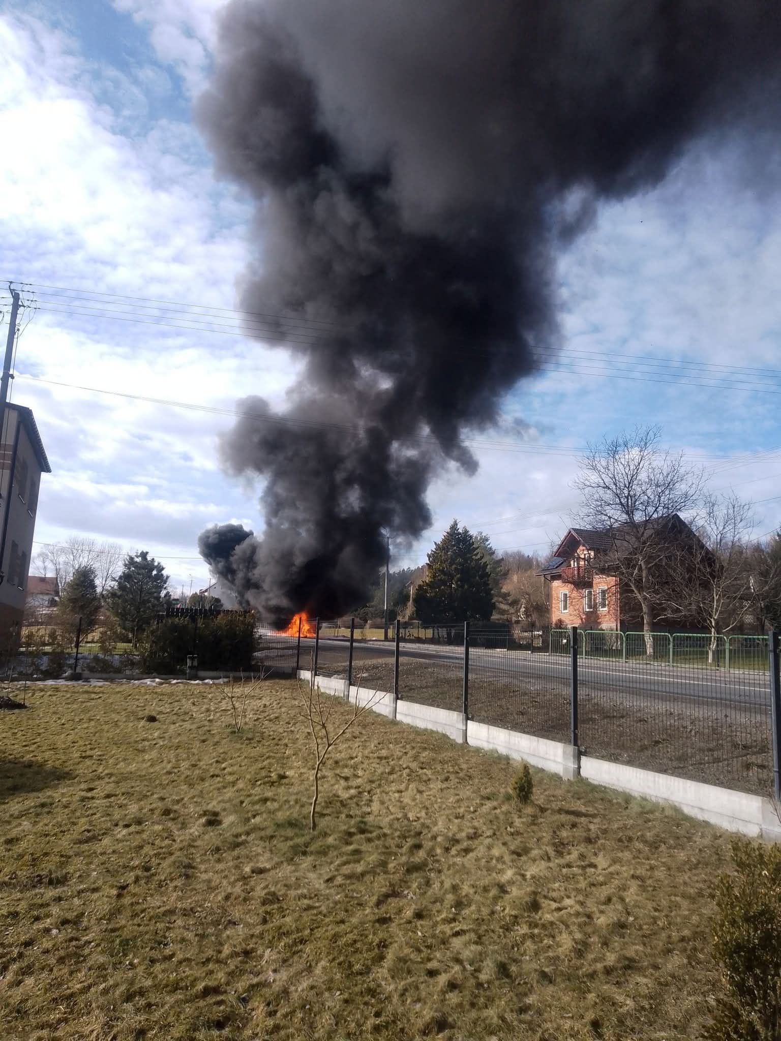 Pożar samochodu na granicy Lasu i Kukowa. Droga była zablokowana.