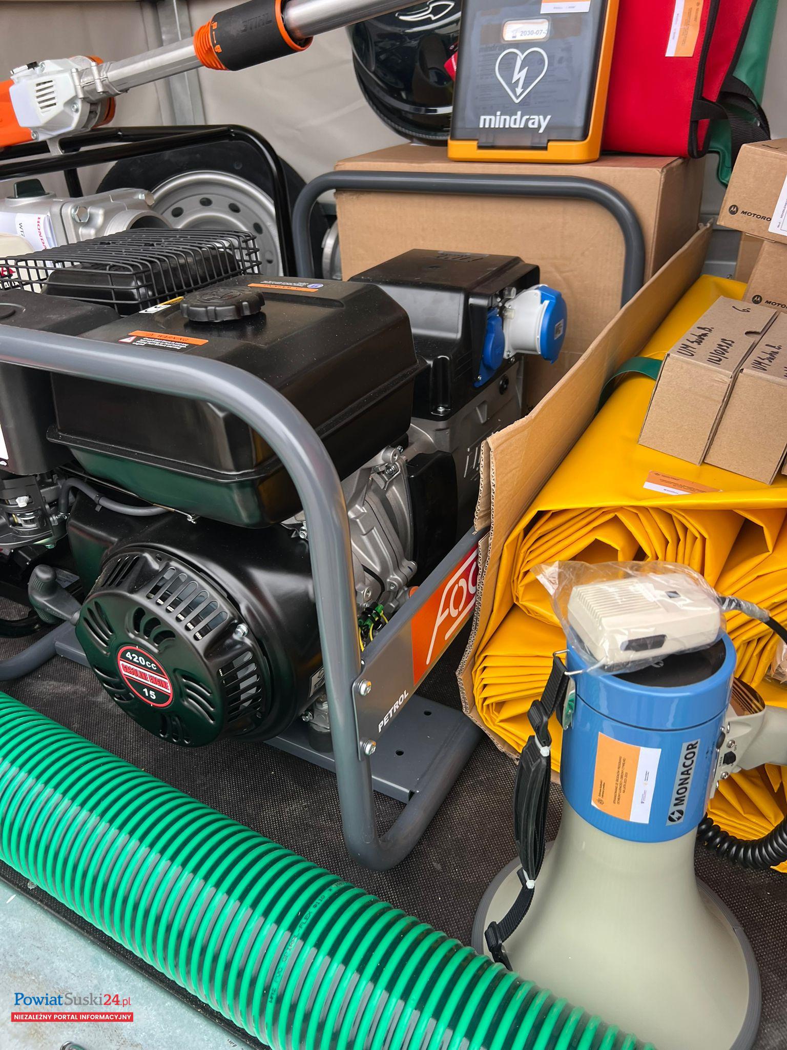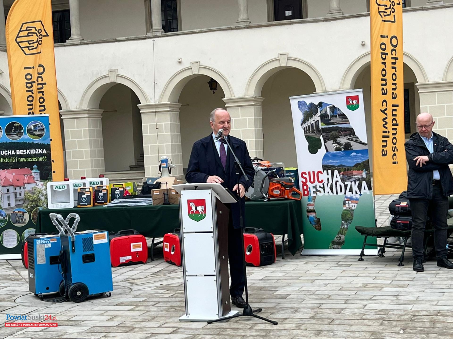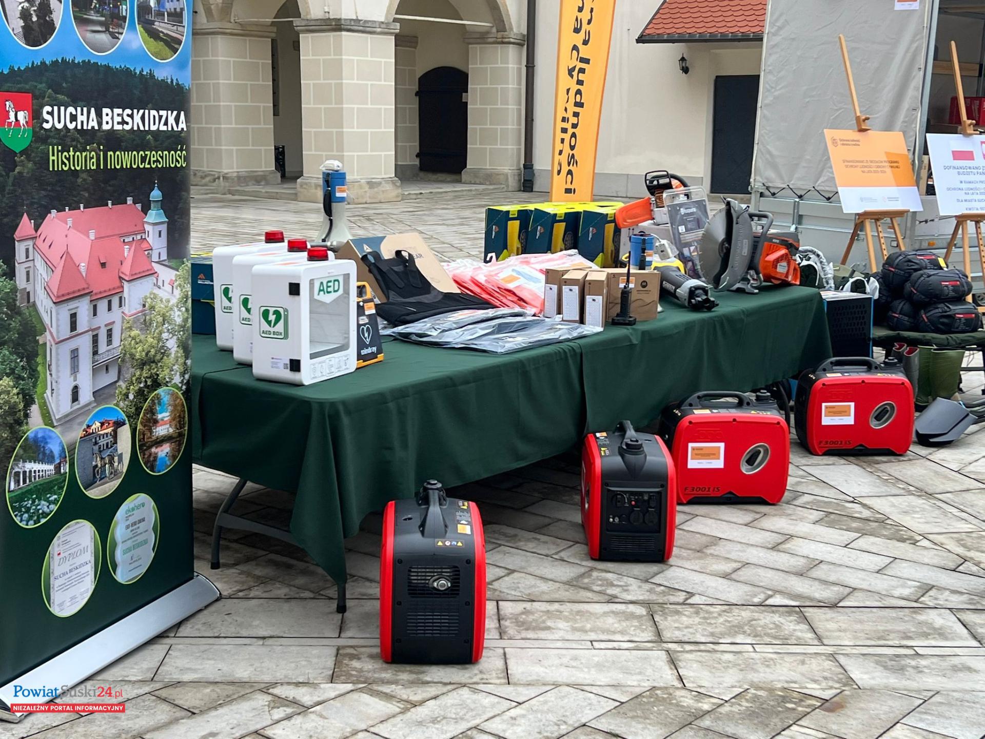 W ramach dofinansowania Gmina Sucha Beskidzka zakupiła szeroki zakres sprzętu niezbędnego do prowadzenia działań ratowniczych i zabezpieczających. Wśród wyposażenia znalazły się m.in. beczkowóz do wody pitnej o pojemności 5000 litrów, pompy szlamowe, agregaty prądotwórcze, namioty magazynowe, kamizelki kuloodporne, defibrylatory AED, osuszacze domowe i przemysłowe, przyczepy transportowe dwuosiowe z plandeką, zapory przeciwpowodziowe ze złączem na wóz strażacki, pompy zanurzeniowe elektryczne oraz motopompy szlamowe.