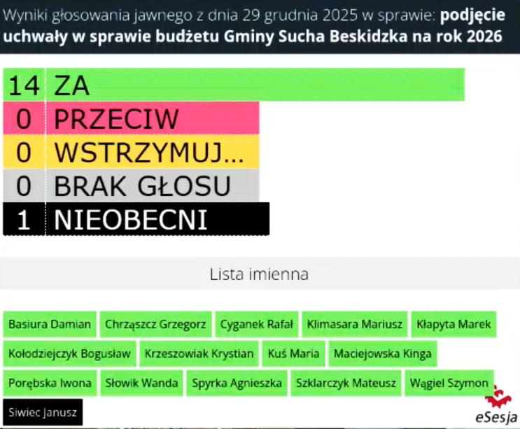 Jednogłośne przyjęcie budżetu to wyraźny sygnał, że władze miasta i radni wspólnie stawiają na rozwój i długofalowe inwestycje, które mają wzmocnić pozycję Suchej Beskidzkiej w regionie.
