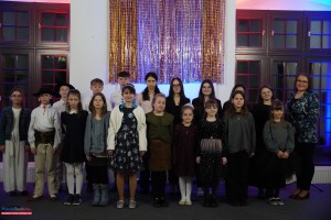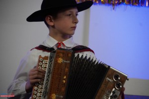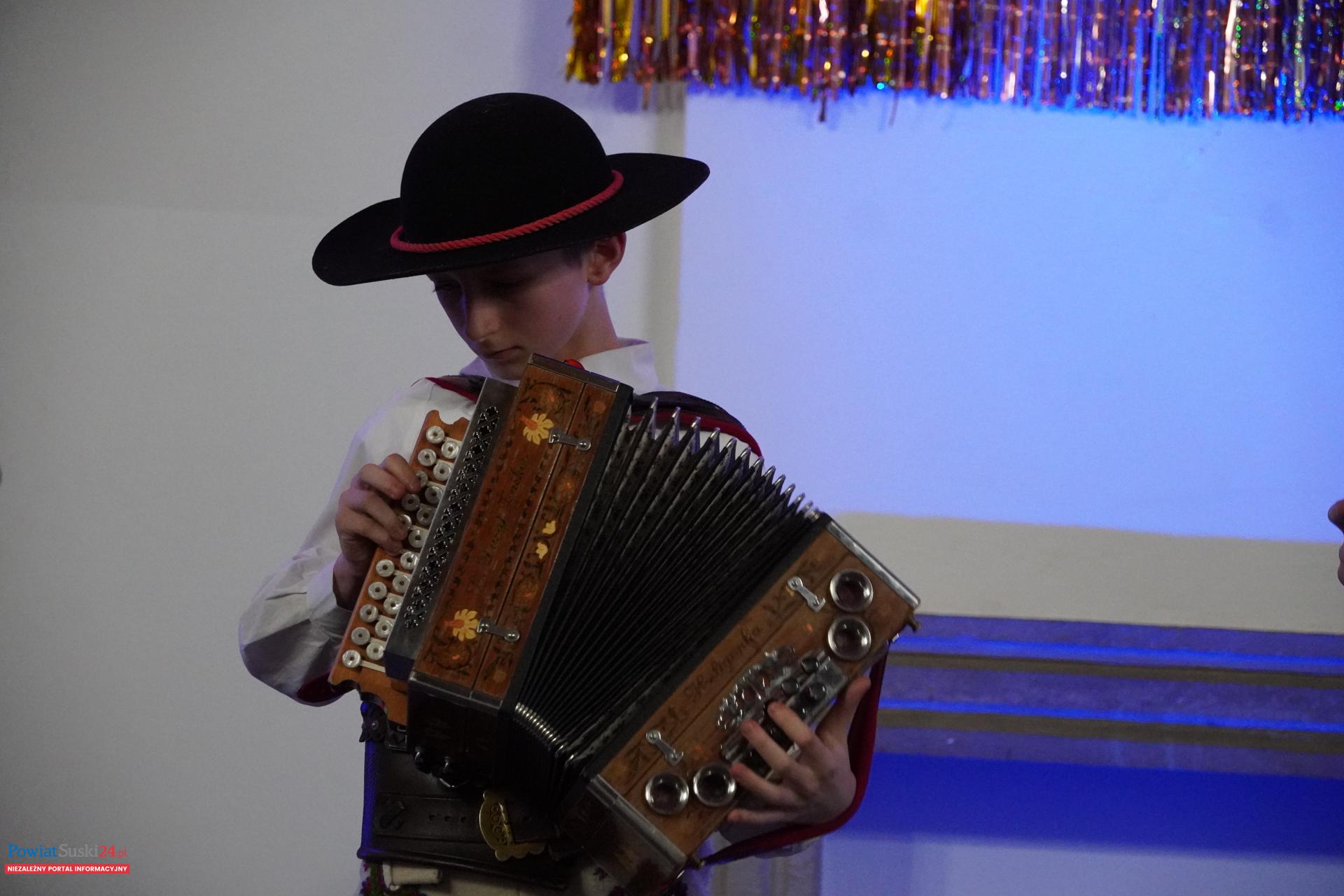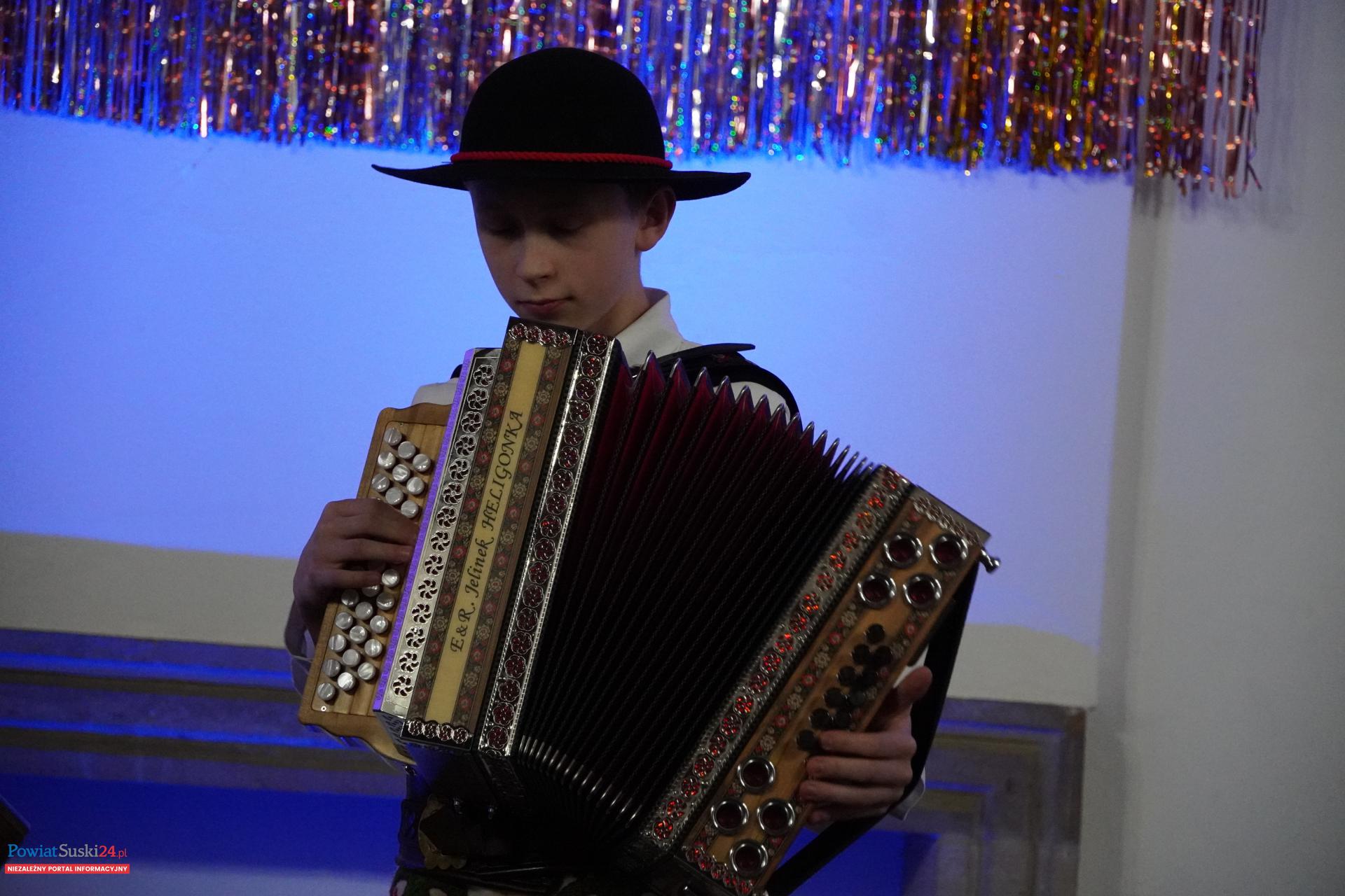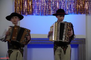 Nie zabrakło także popisów instrumentalnych. Uczniowie „Allegro” zaprezentowali swoje umiejętności gry na fortepianie, skrzypcach, akordeonie oraz heligonkach, a akompaniament zapewniała im pani Małgorzata Kubieniec, dyrygentka i serce całego przedsięwzięcia. Każdy występ był nagradzany gromkimi brawami, a na twarzach Babć i Dziadków nie brakowało dumy i wzruszenia.