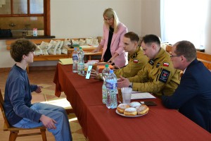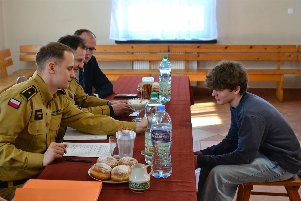 Czas pomiędzy etapami konkursu nie był dla młodzieży jedynie chwilą oczekiwania na wyniki. Druhowie z OSP Sucha Beskidzka – Błądzonka zaprezentowali uczestnikom sprzęt ratowniczo-gaśniczy, którym dysponuje jednostka. Była to okazja do skonfrontowania wiedzy teoretycznej z praktyką oraz bliższego poznania realiów strażackiej służby.