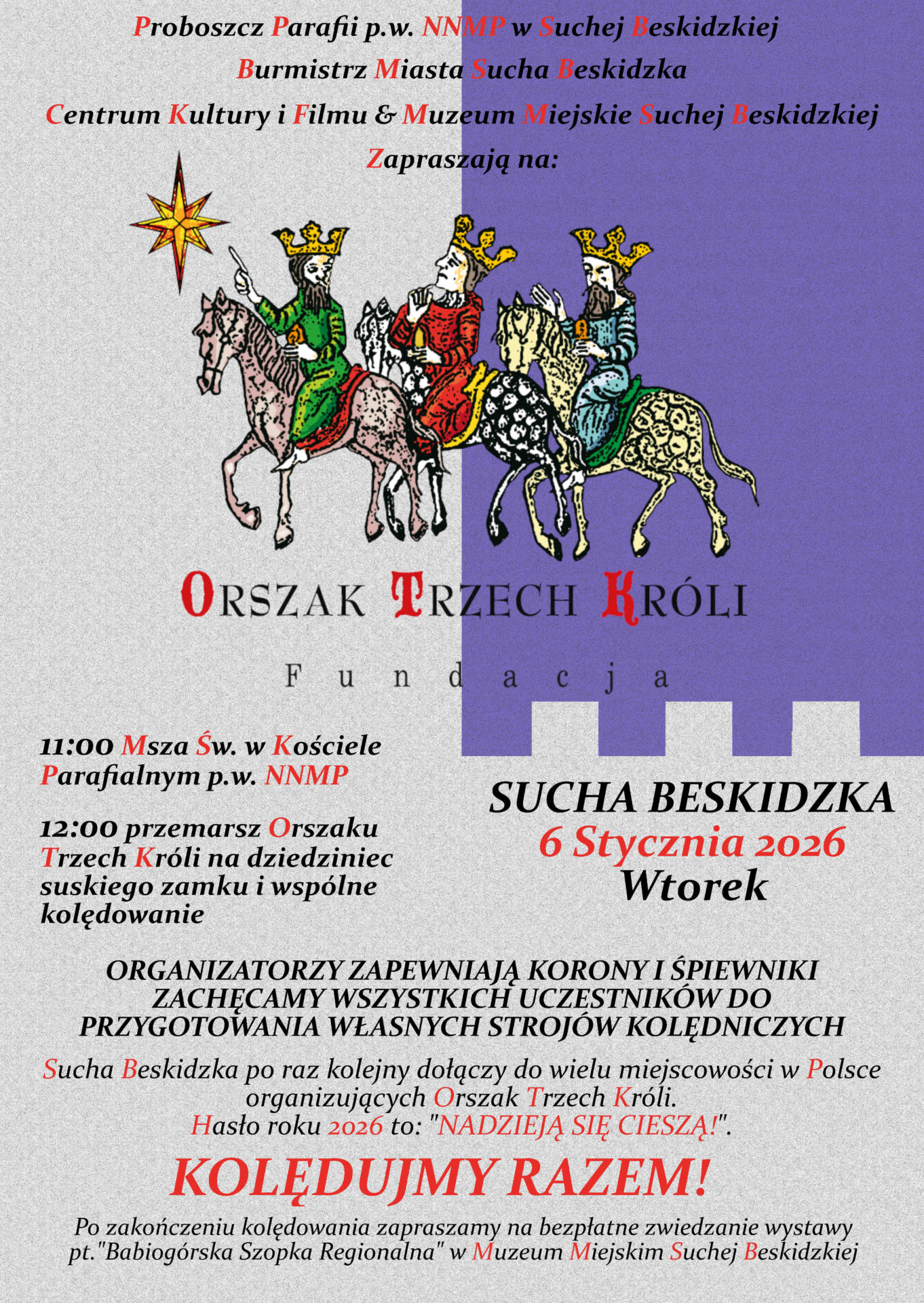 Hasłem Orszaku Trzech Króli w 2026 roku jest: „Nadzieją się cieszę!”, a Sucha Beskidzka po raz kolejny dołącza do wielu miejscowości w całej Polsce, które tego dnia wspólnie celebrują to wyjątkowe wydarzenie.