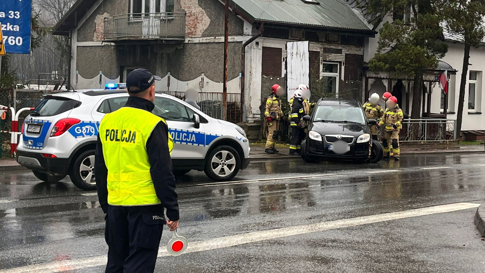 Na miejscu interweniuje policja, która kieruje ruchem, aby zapewnić bezpieczeństwo kierowcom i pieszym.