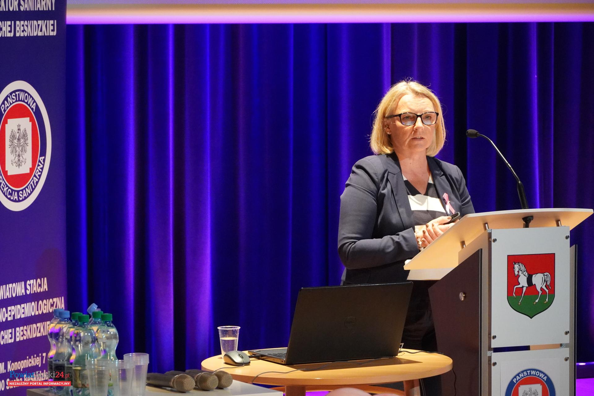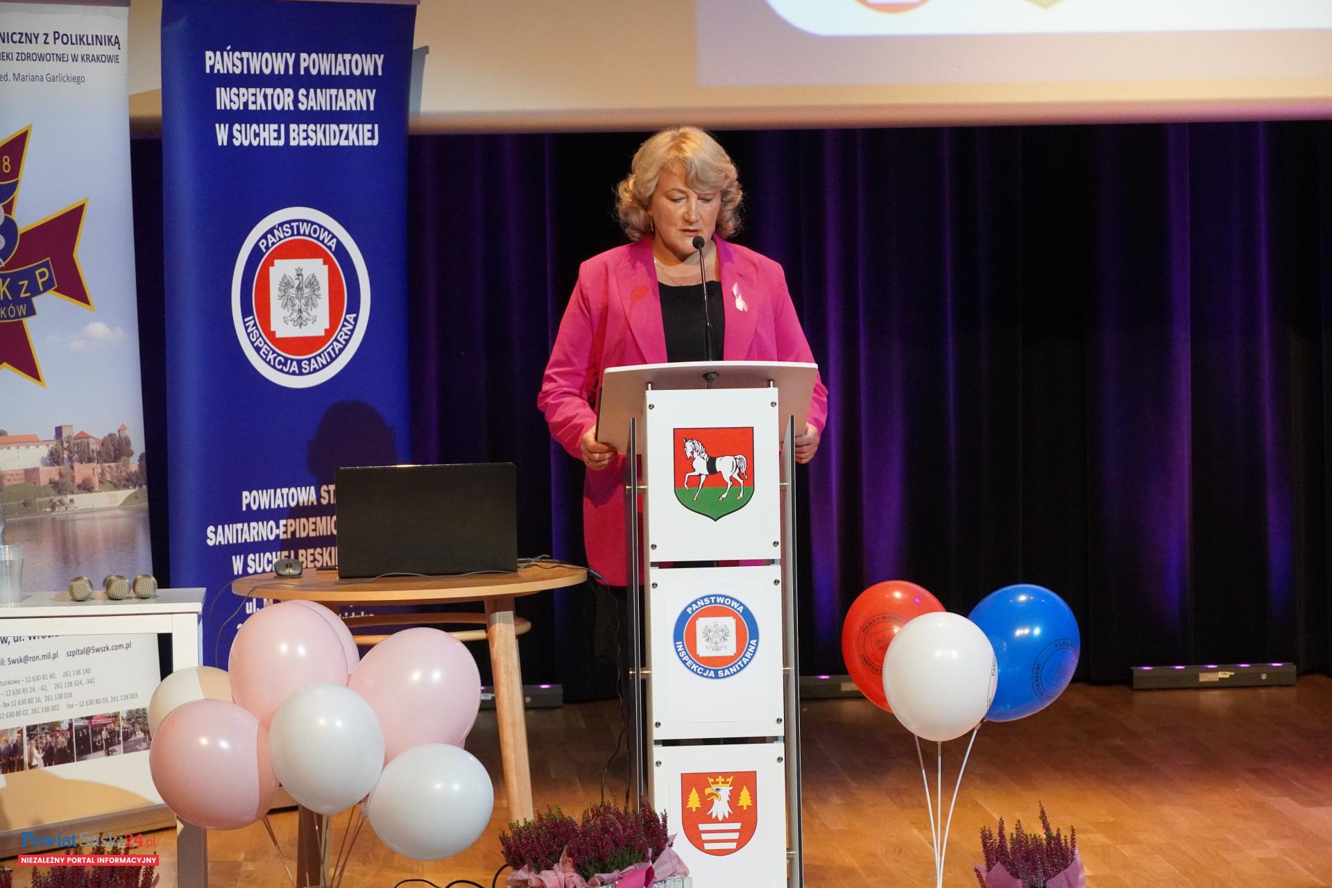 Wydarzenie zgromadziło licznie przybyłych gości, w tym przedstawicieli władz wojewódzkich i lokalnych, instytucji medycznych oraz mieszkańców powiatu. Uroczystego otwarcia dokonała dr inż. Janina Gołuszka, Państwowy Powiatowy Inspektor Sanitarny w Suchej Beskidzkiej, podkreślając znaczenie profilaktyki i edukacji zdrowotnej w walce z rakiem piersi.