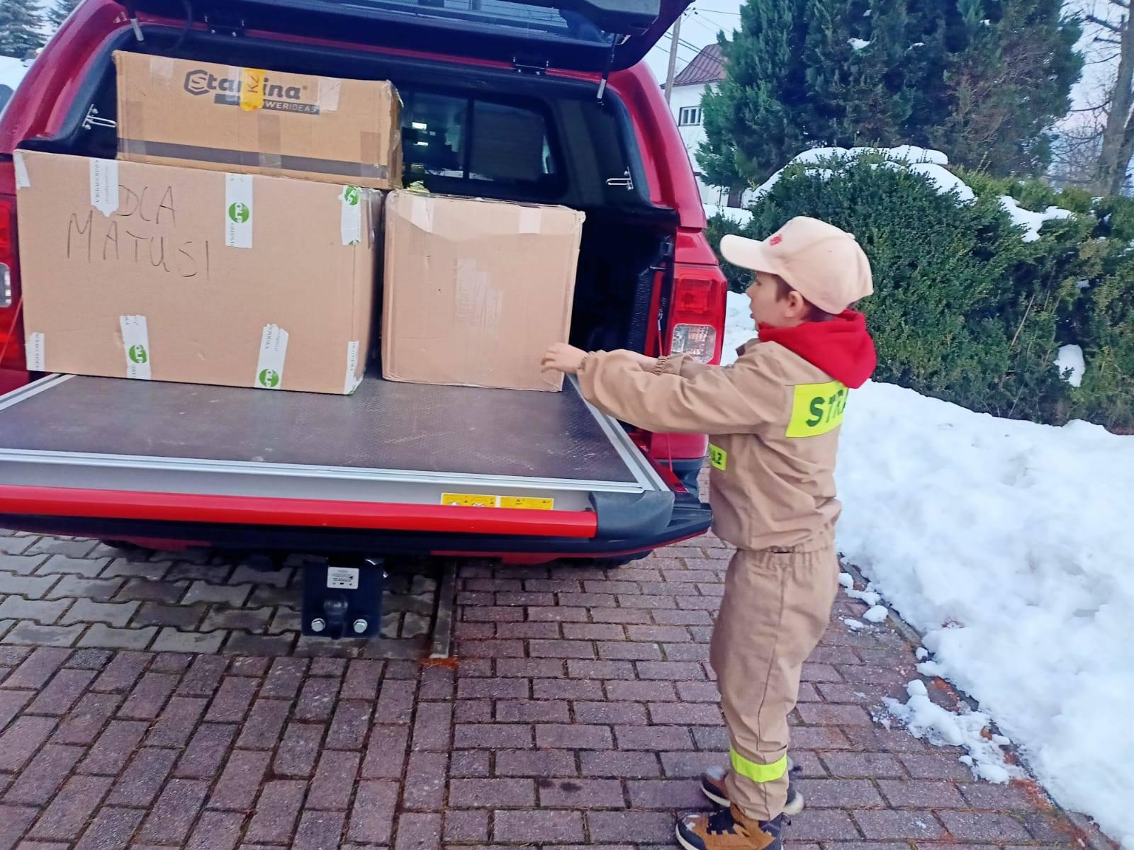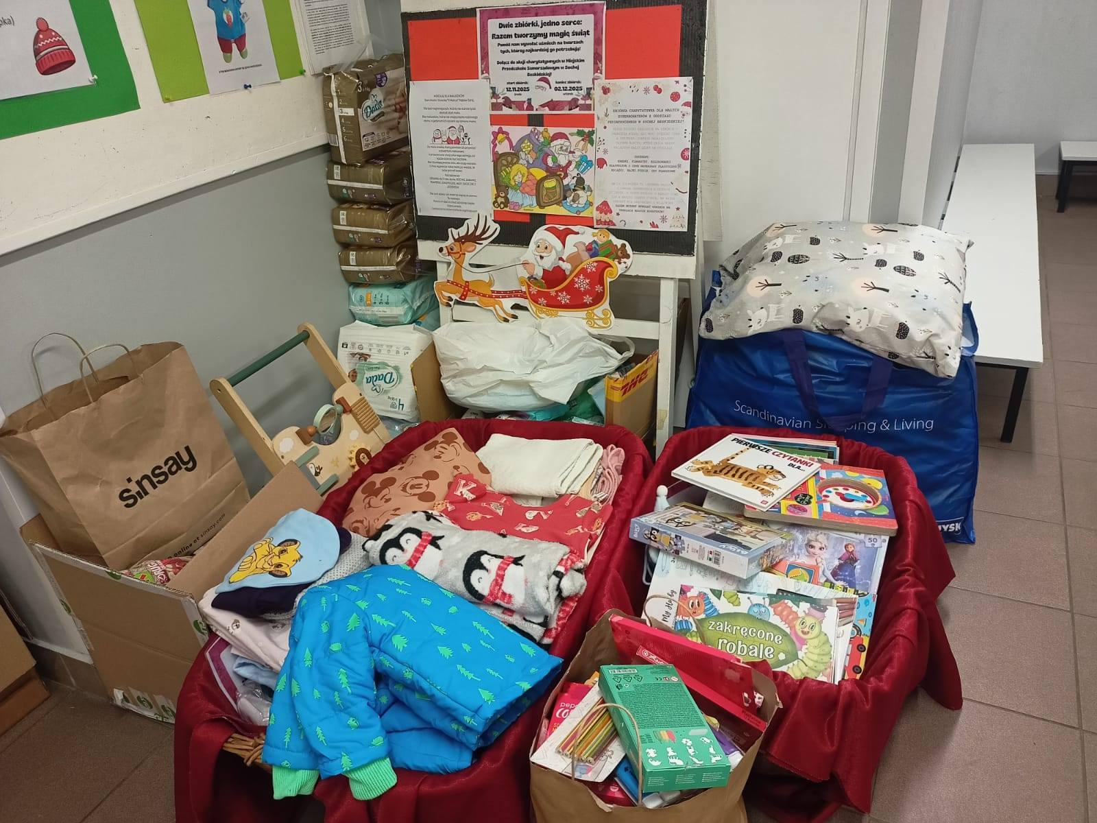 3 grudnia 2025 roku przedstawiciele przedszkola, wspólnie z Ochotniczą Strażą Pożarną Sucha Beskidzka Miasto, przekazali dary dla podopiecznych Domu Matki i Dziecka „U Matusi” w Rabce-Zdroju. Strażacy nie tylko aktywnie włączyli się w mikołajkową inicjatywę, lecz także udostępnili samochód strażacki, dzięki czemu możliwy był sprawny transport licznych paczek. W akcję z entuzjazmem zaangażowała się również młodzież z Młodzieżowej Drużyny Pożarniczej, wspierając pakowanie i przekazywanie prezentów.