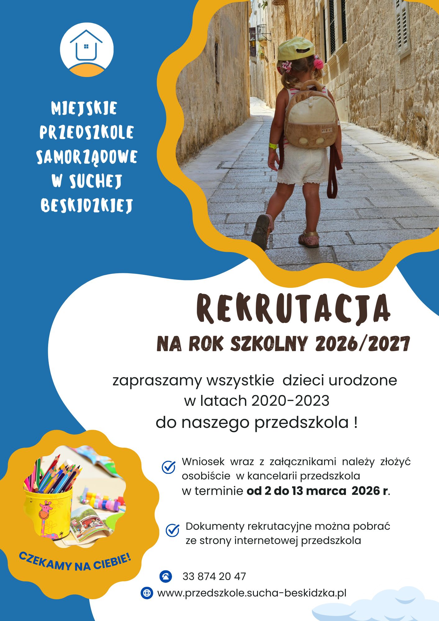 Rozpoczął się nabór do Miejskie Przedszkole Samorządowe w Suchej Beskidzkiej na rok szkolny 2026/2027. Placówka zaprasza do udziału w rekrutacji dzieci urodzone w latach 2020–2023.
