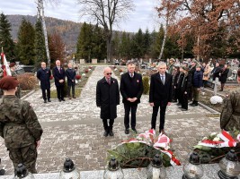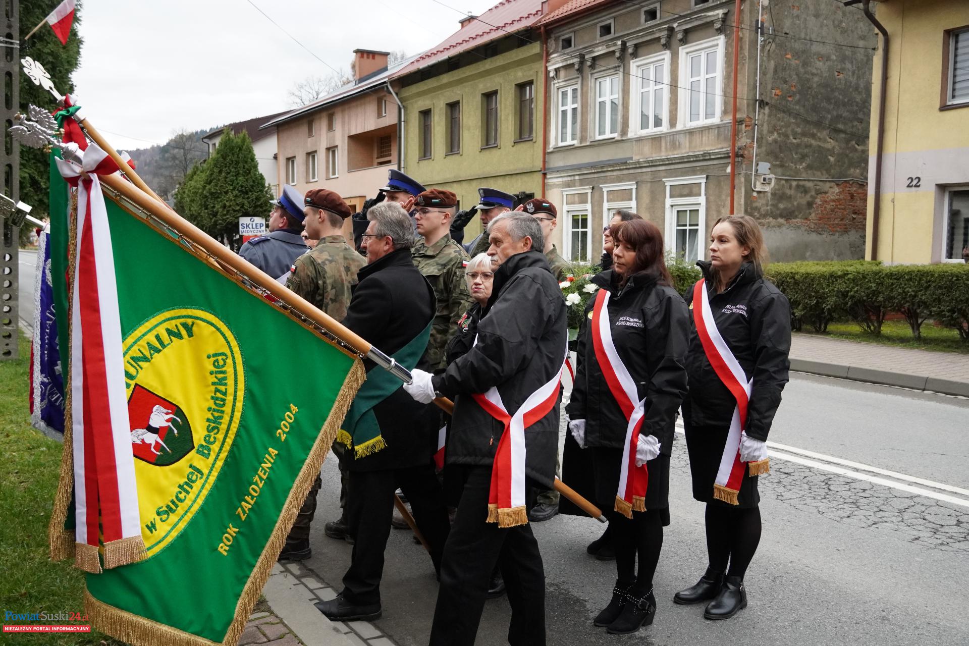Uroczyste złożenie kwiatów na kwaterze Wojska Polskiego na Cmentarzu Parafialnym w Suchej Beskidzkiej. Następnie po mszy w kościele parafialnym w Suchej Beskidzkiej uczestnicy obchodów, prowadzeni przez Miejską Orkiestrę Dętą i poczty sztandarowe, przemaszerowali ulicami miasta pod tablicę marszałka Józefa Piłsudskiego. Tam wspólnie odśpiewali hymn narodowy i złożyli kwiaty ku czci bohaterów niepodległej Polski.