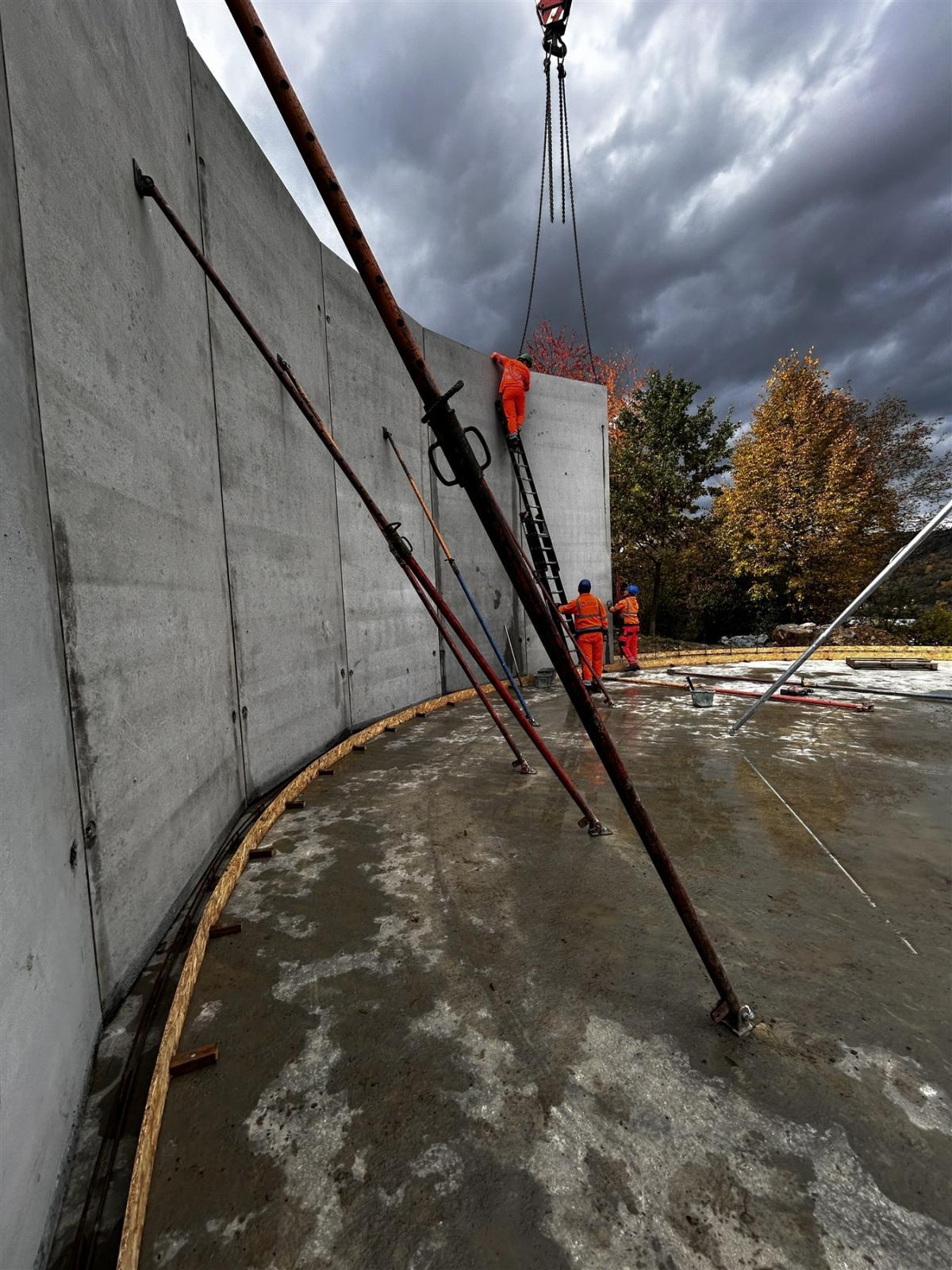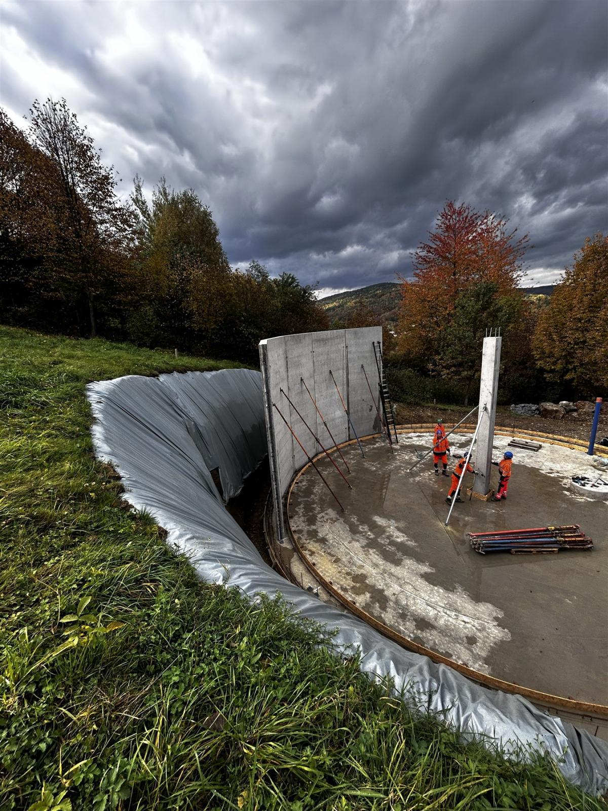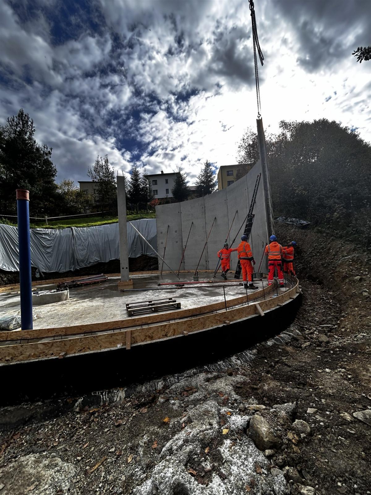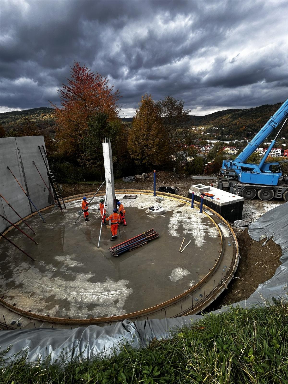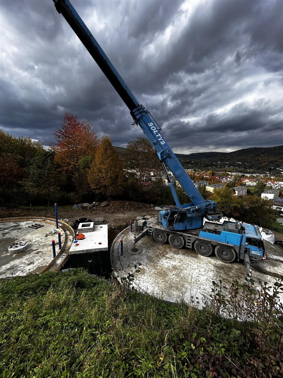 Na wykonanych latem płytach dennych, przy użyciu ciężkiego sprzętu, montowane są obecnie ściany i stropy z prefabrykowanych elementów żelbetowych. Zakończenie tego etapu robót planowane jest na koniec listopada bieżącego roku.