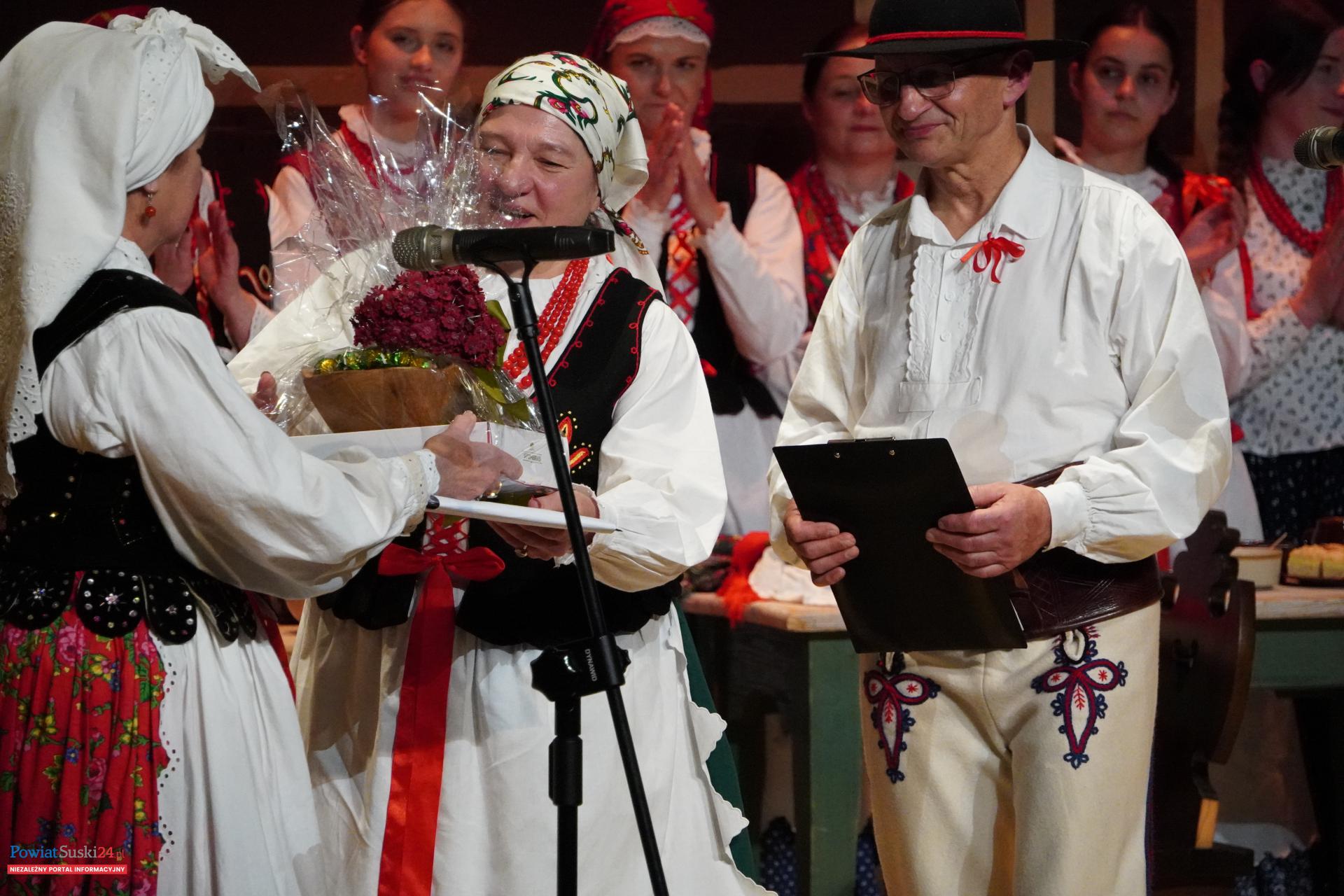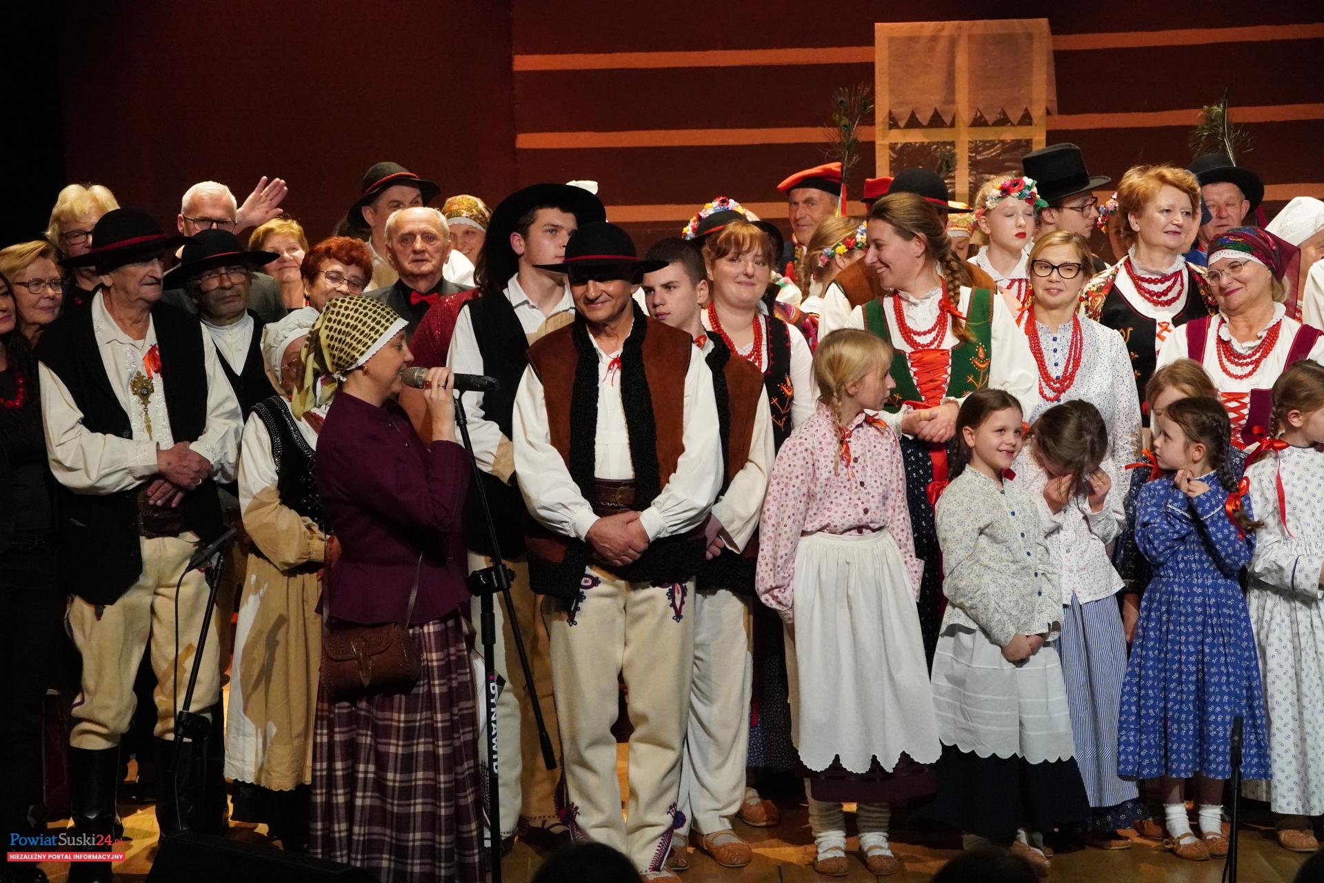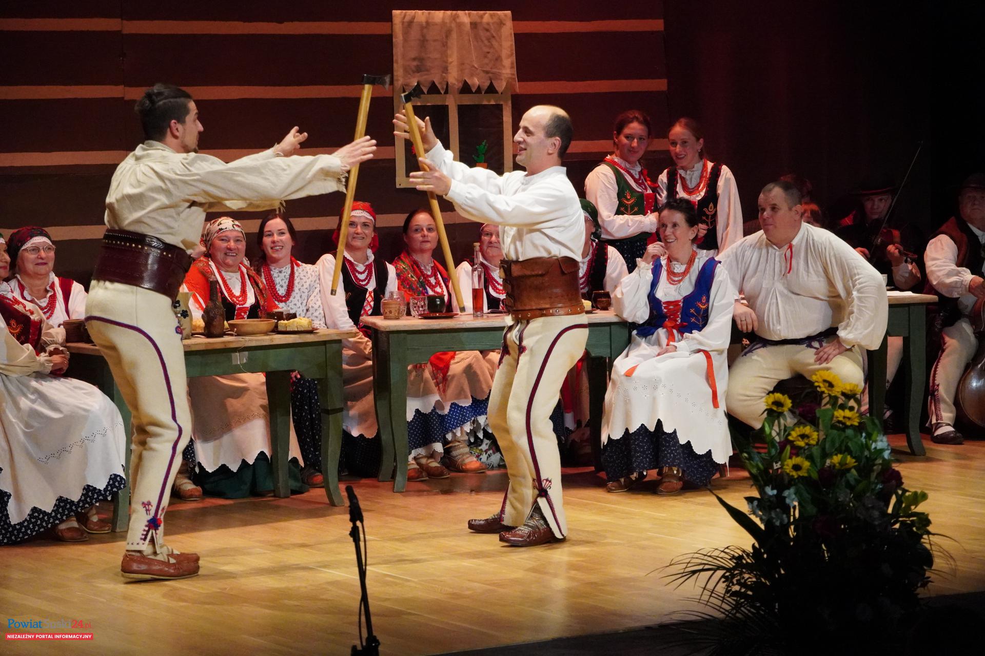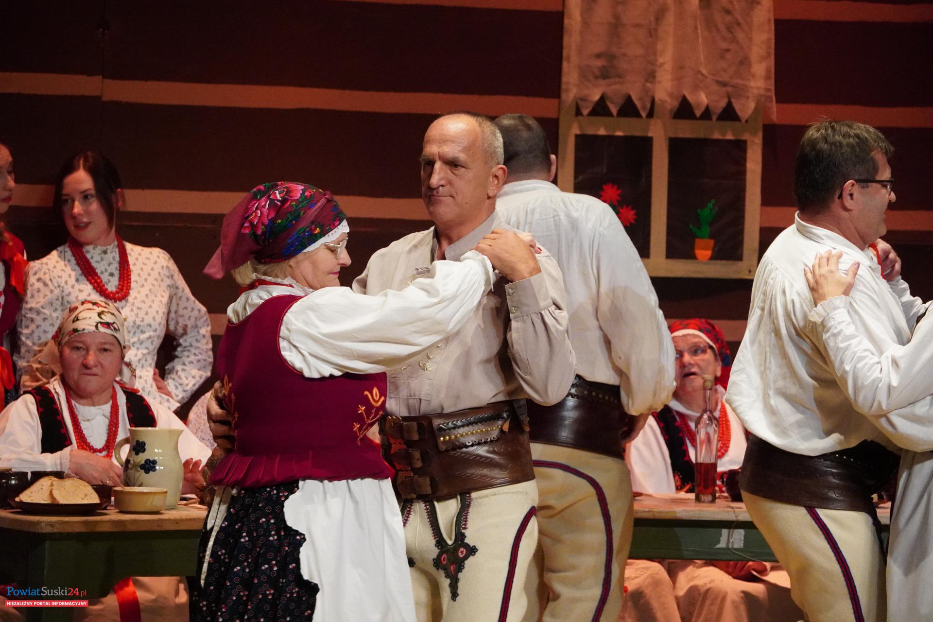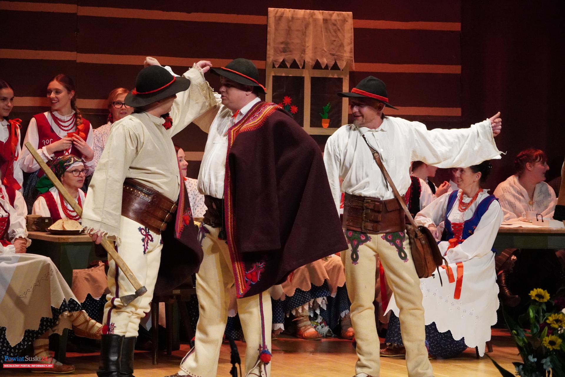 Po wystąpieniach kierowników i prezentacji osiągnięć zespołu Regina Wicher zaprosiła publiczność do obejrzenia widowiska obrzędowego. Po słowach: „A teraz przeniesiemy się do karczmy…” odsłonięto kurtynę i rozpoczął się pełen humoru i dynamiki spektakl z udziałem całego zespołu „Ziemia Suska”. Finał, w którym „pali się sopa”, wywołał żywą reakcję publiczności.