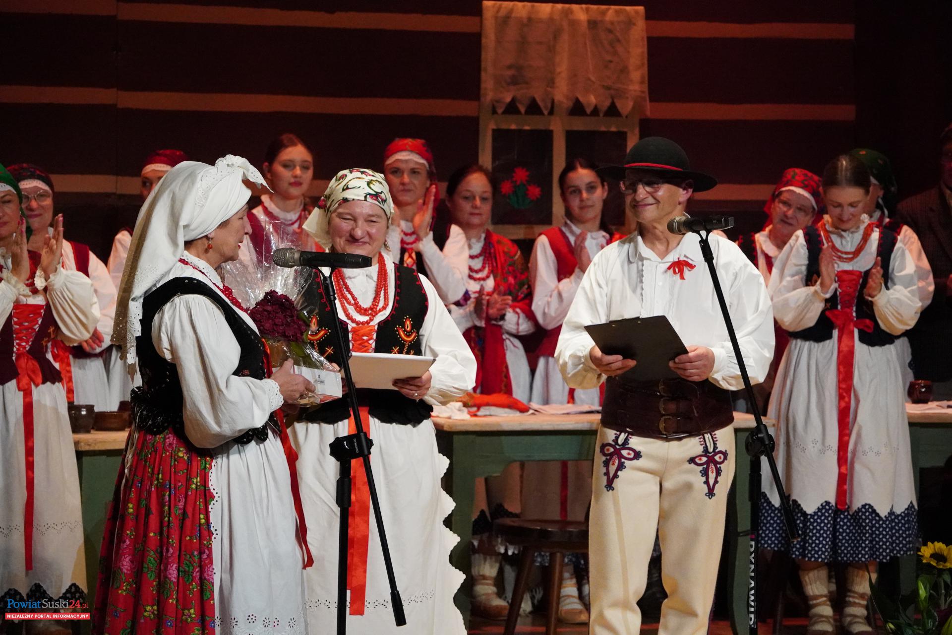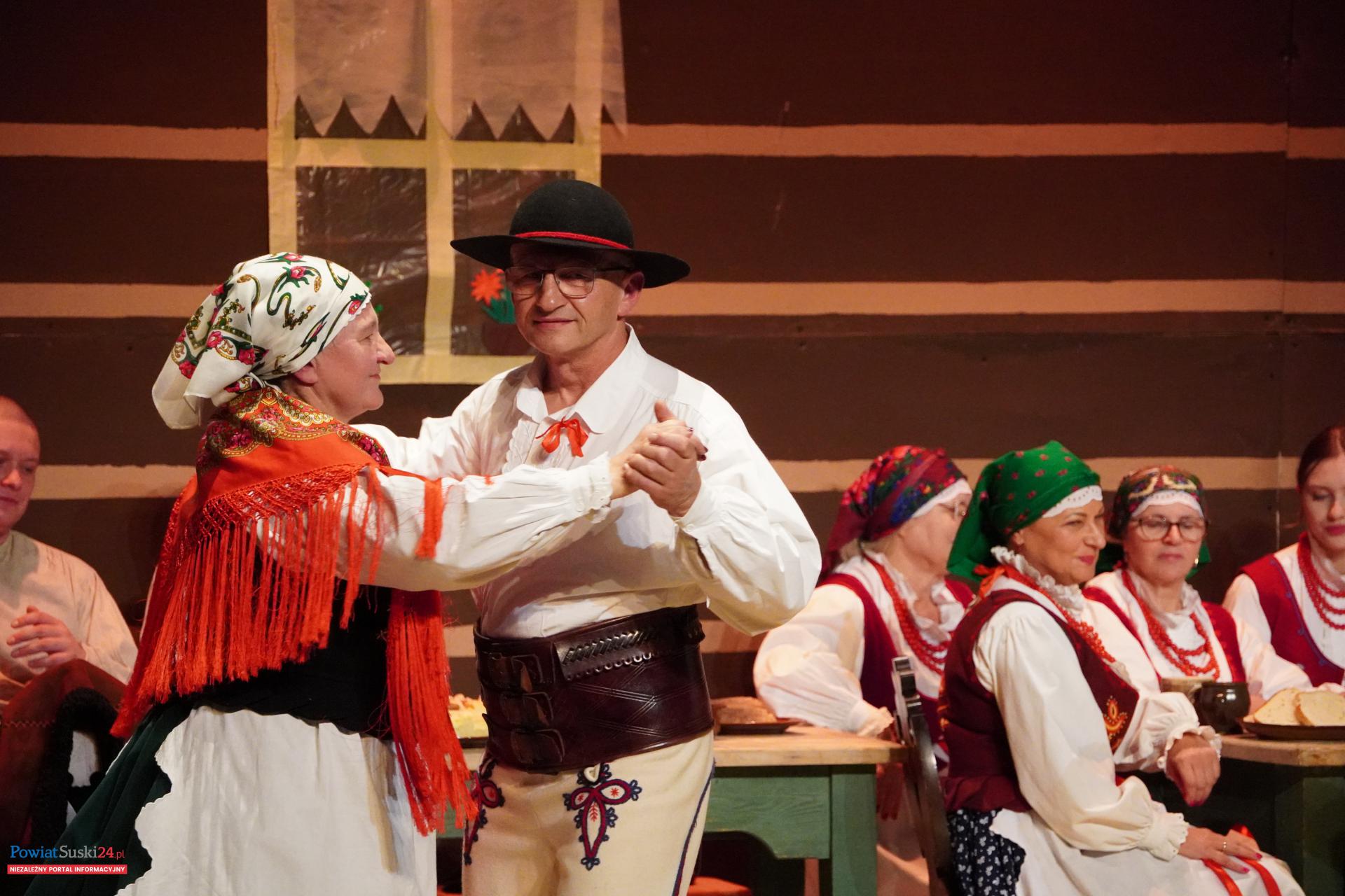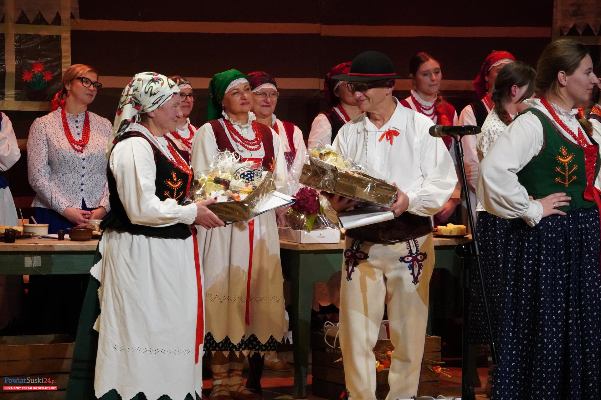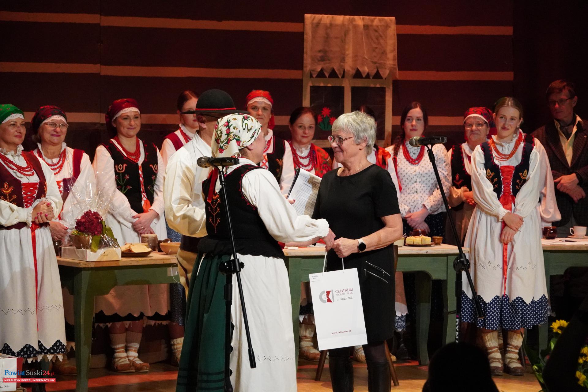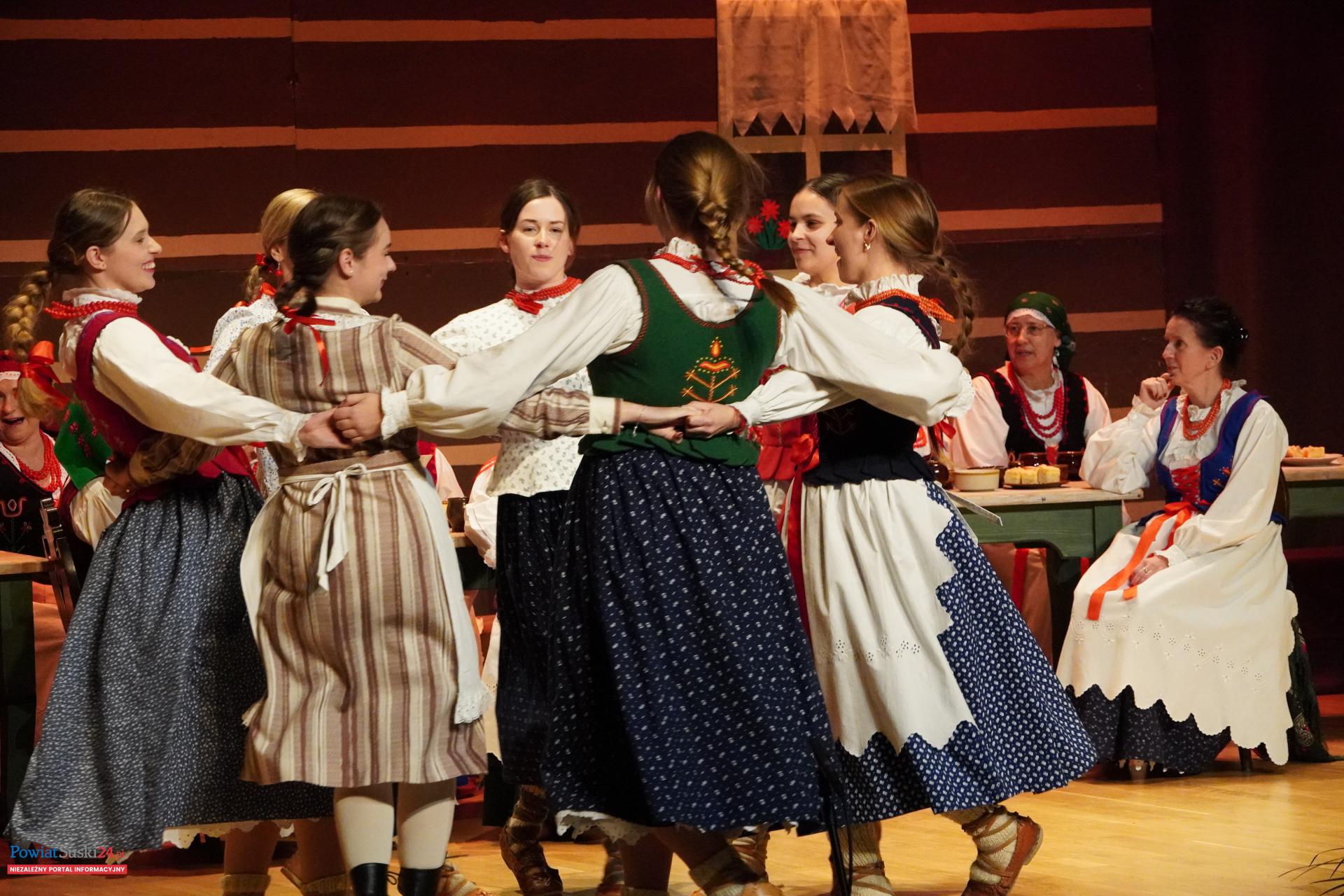 Po wystąpieniach kierowników i prezentacji osiągnięć zespołu Regina Wicher zaprosiła publiczność do obejrzenia widowiska obrzędowego. Po słowach: „A teraz przeniesiemy się do karczmy…” odsłonięto kurtynę i rozpoczął się pełen humoru i dynamiki spektakl z udziałem całego zespołu „Ziemia Suska”. Finał, w którym „pali się sopa”, wywołał żywą reakcję publiczności.
