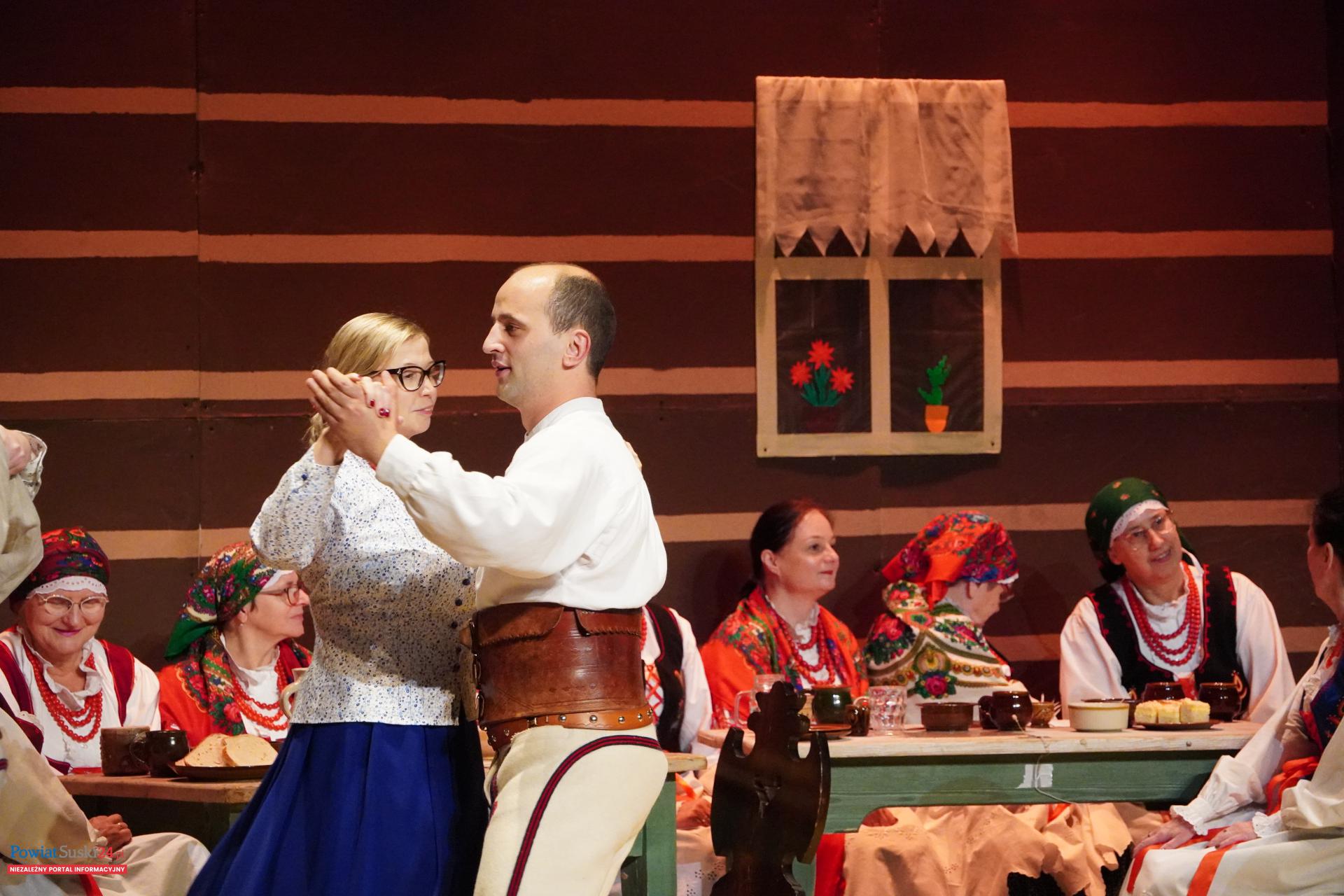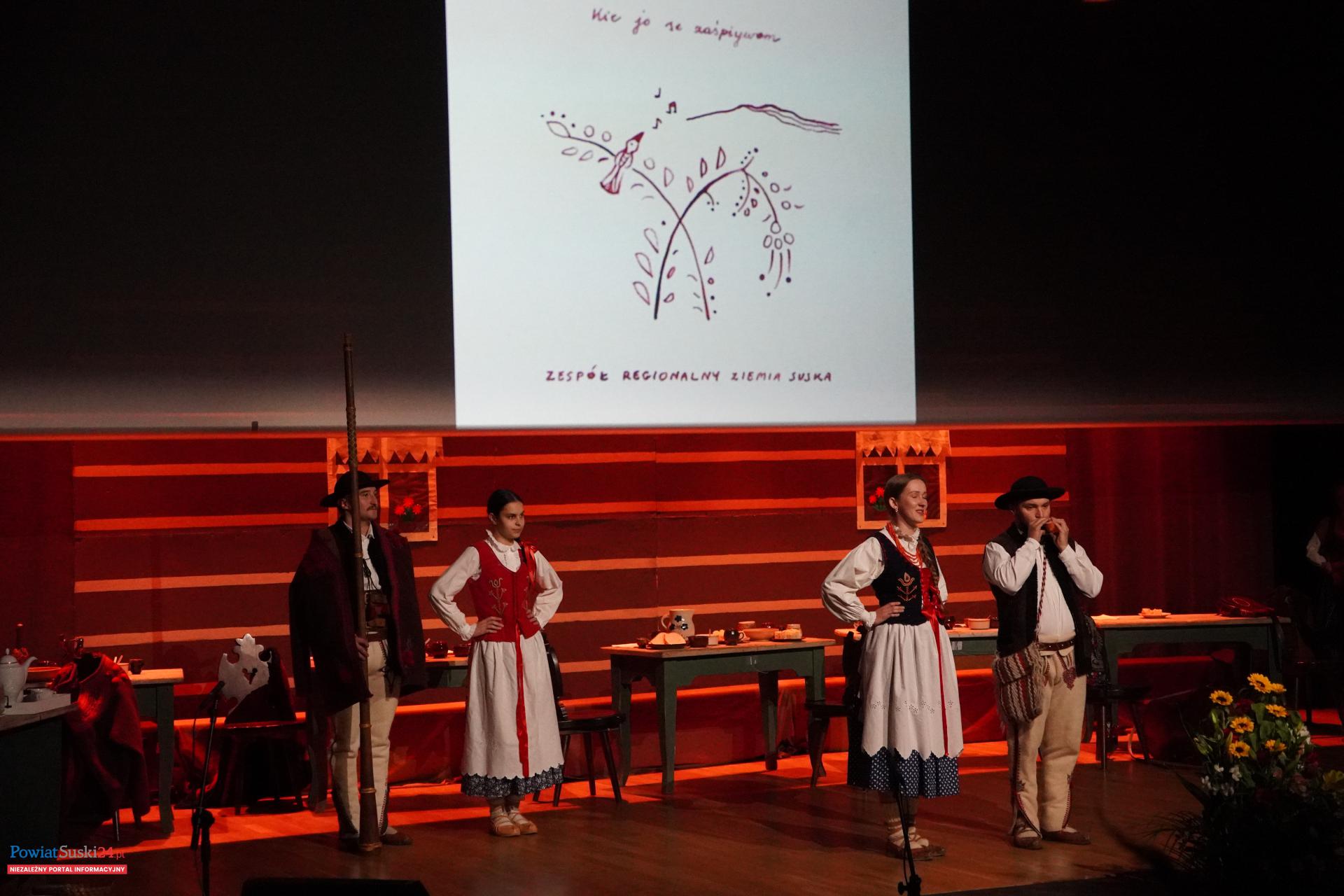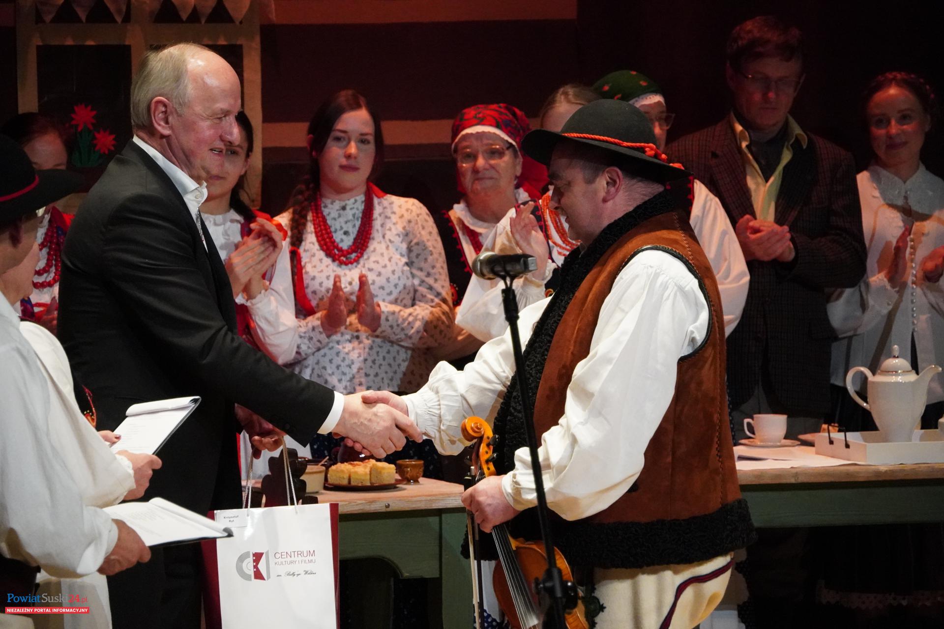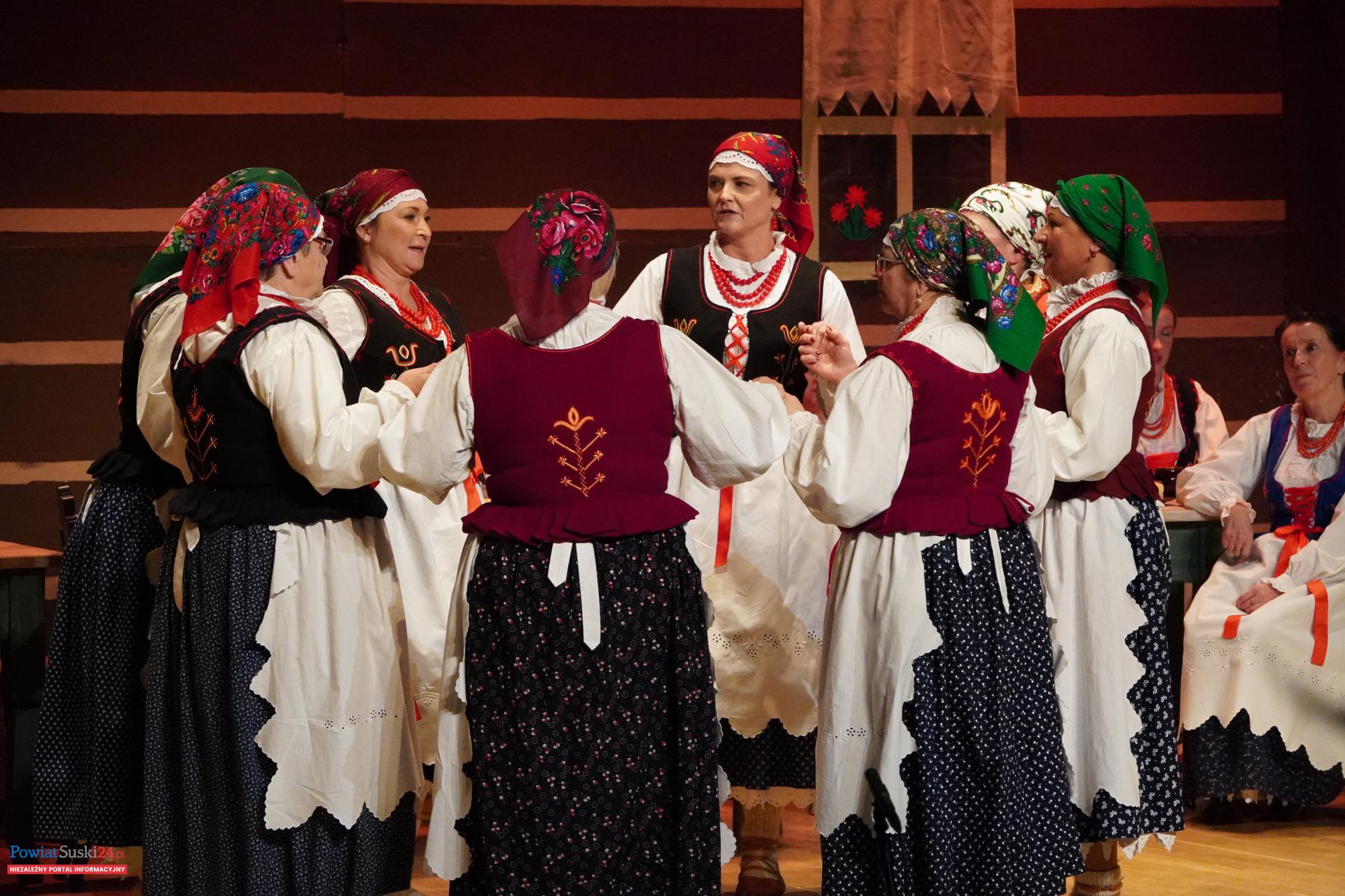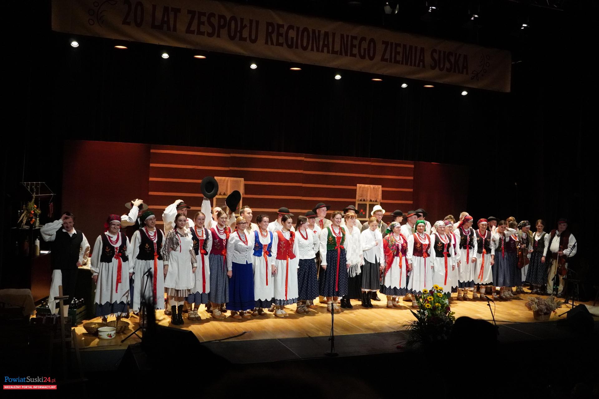 Po wystąpieniach kierowników i prezentacji osiągnięć zespołu Regina Wicher zaprosiła publiczność do obejrzenia widowiska obrzędowego. Po słowach: „A teraz przeniesiemy się do karczmy…” odsłonięto kurtynę i rozpoczął się pełen humoru i dynamiki spektakl z udziałem całego zespołu „Ziemia Suska”. Finał, w którym „pali się sopa”, wywołał żywą reakcję publiczności.
