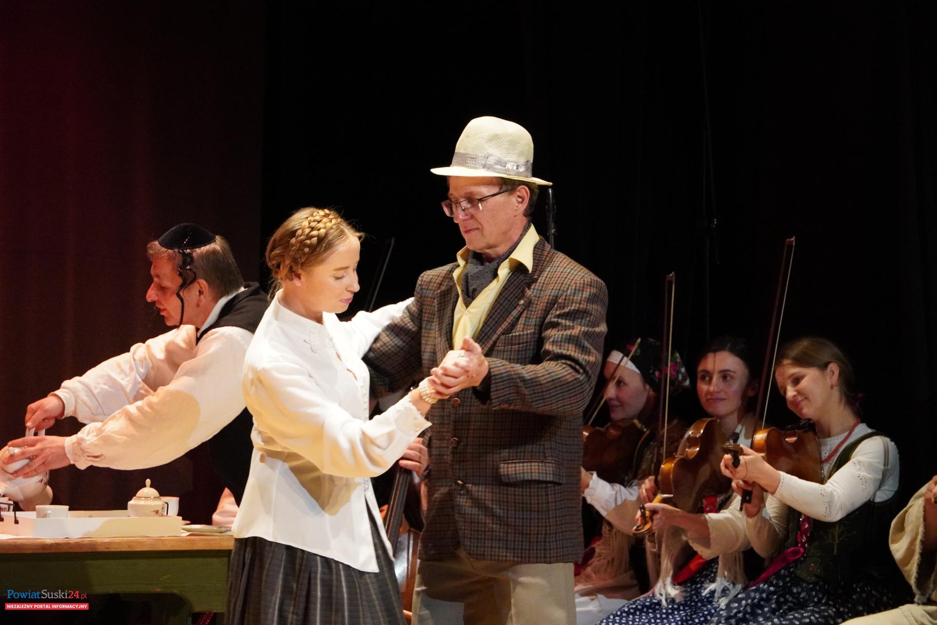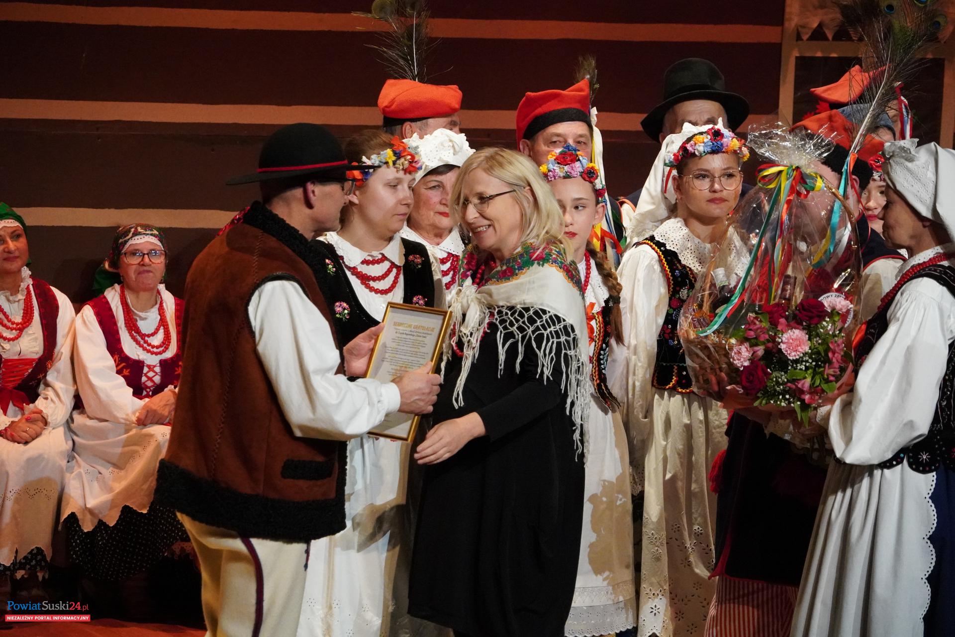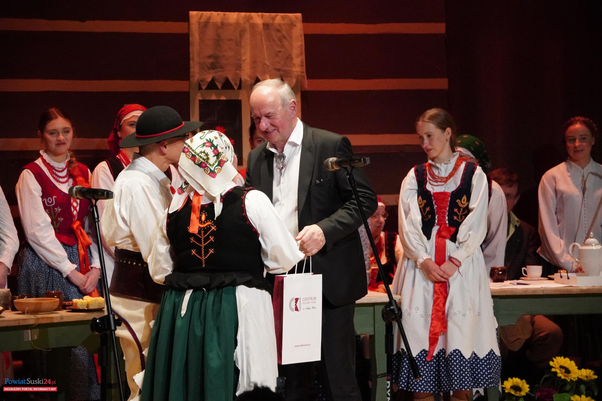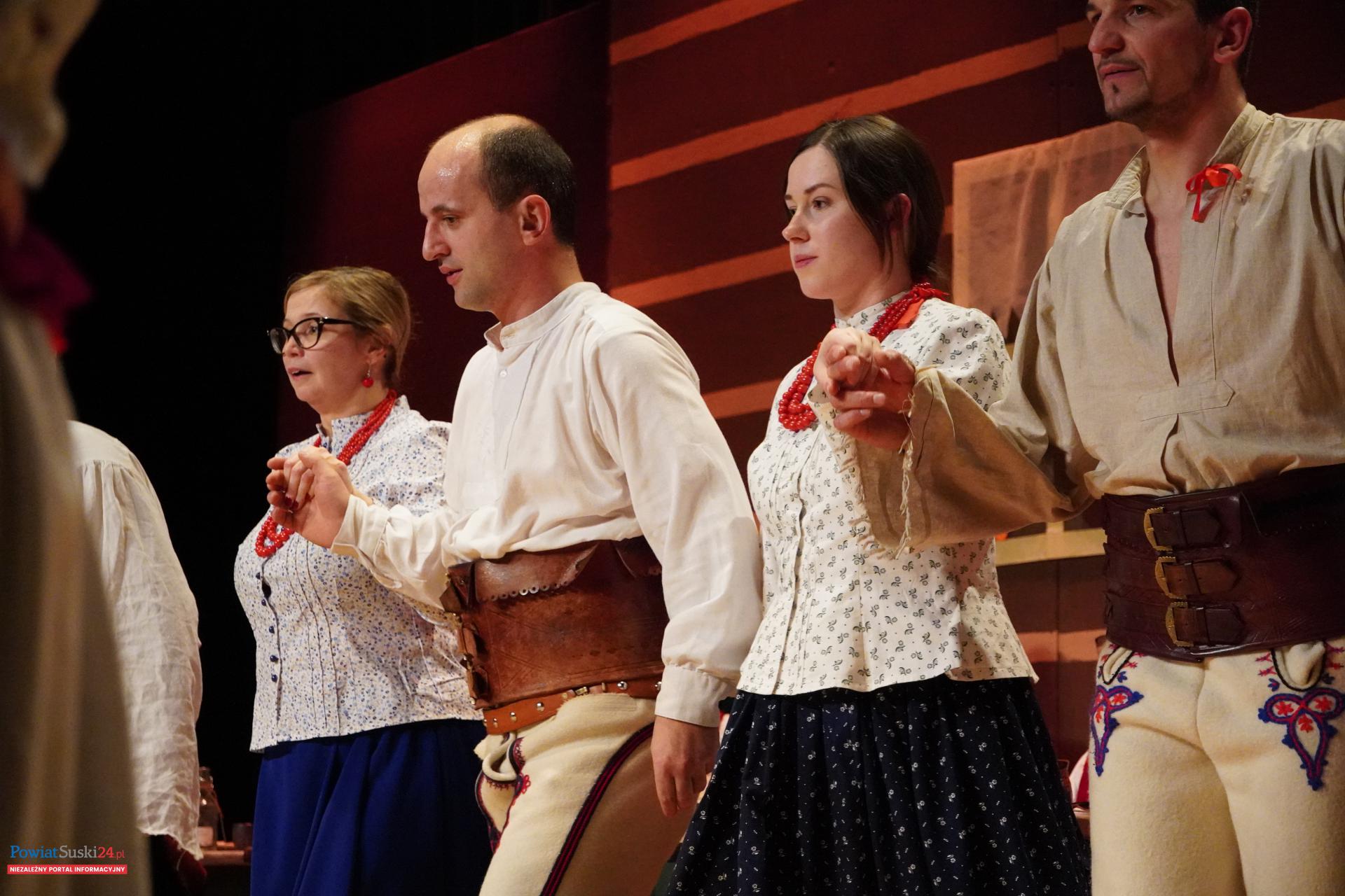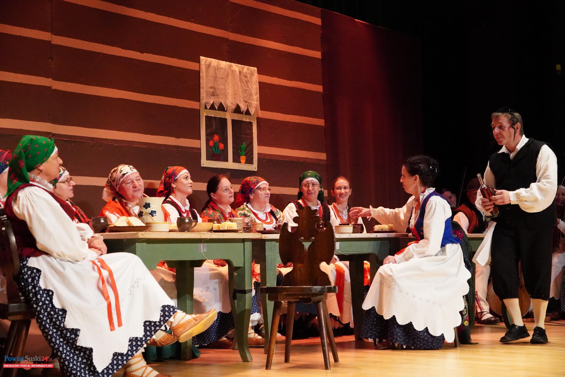 Po wystąpieniach kierowników i prezentacji osiągnięć zespołu Regina Wicher zaprosiła publiczność do obejrzenia widowiska obrzędowego. Po słowach: „A teraz przeniesiemy się do karczmy…” odsłonięto kurtynę i rozpoczął się pełen humoru i dynamiki spektakl z udziałem całego zespołu „Ziemia Suska”. Finał, w którym „pali się sopa”, wywołał żywą reakcję publiczności.