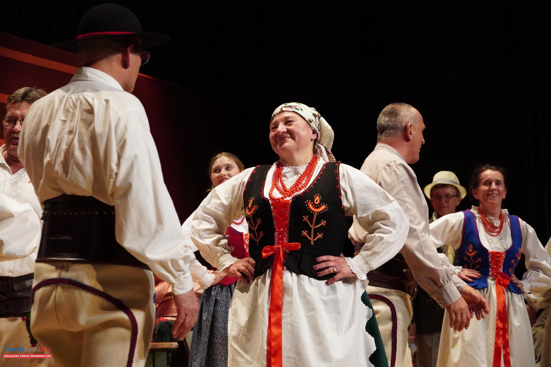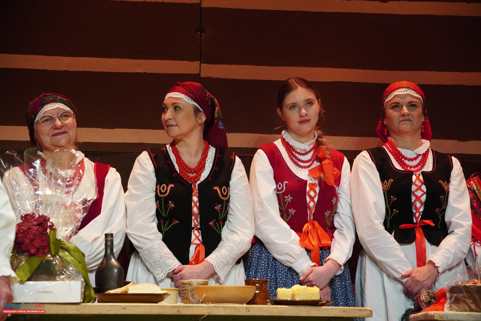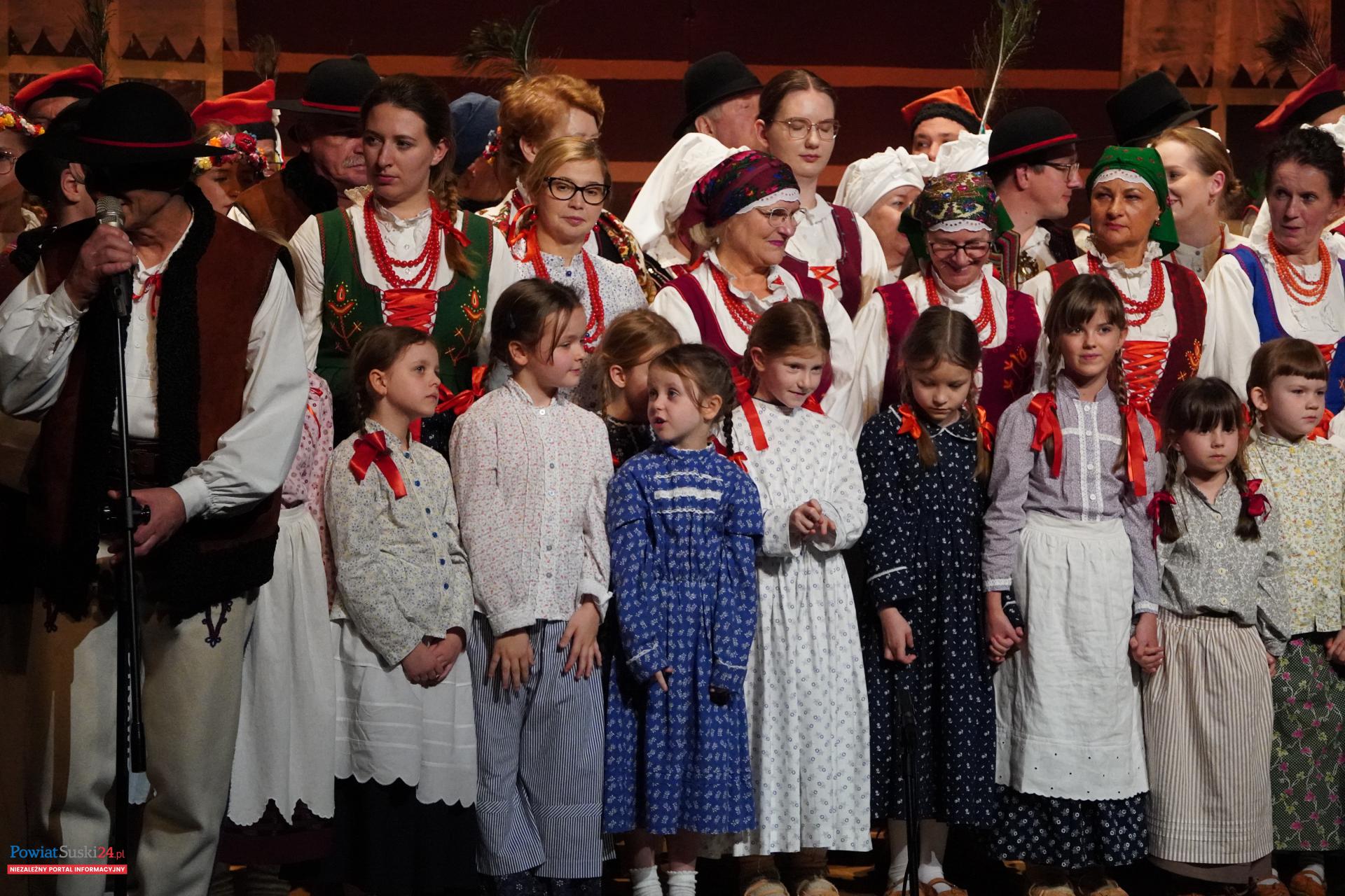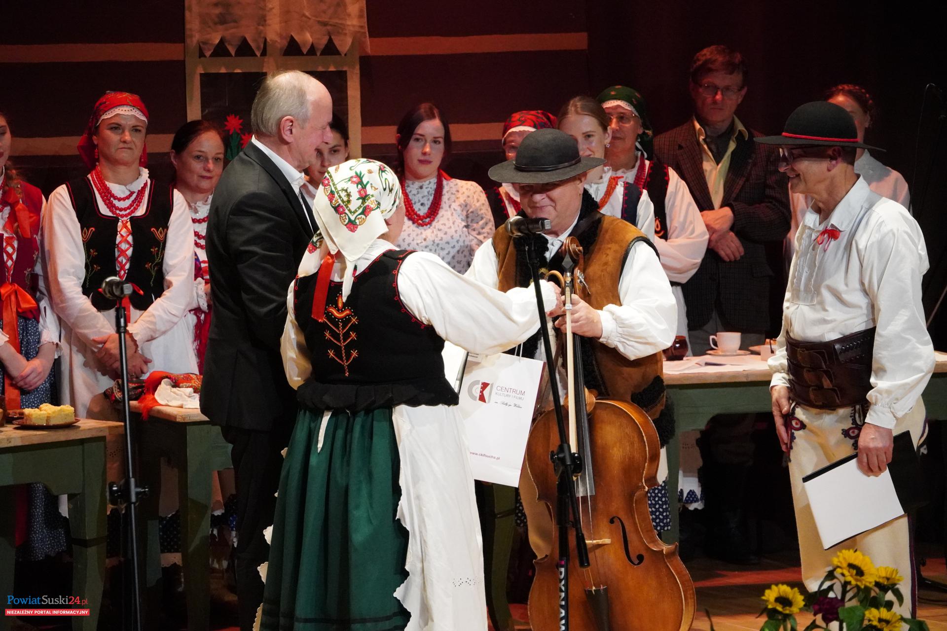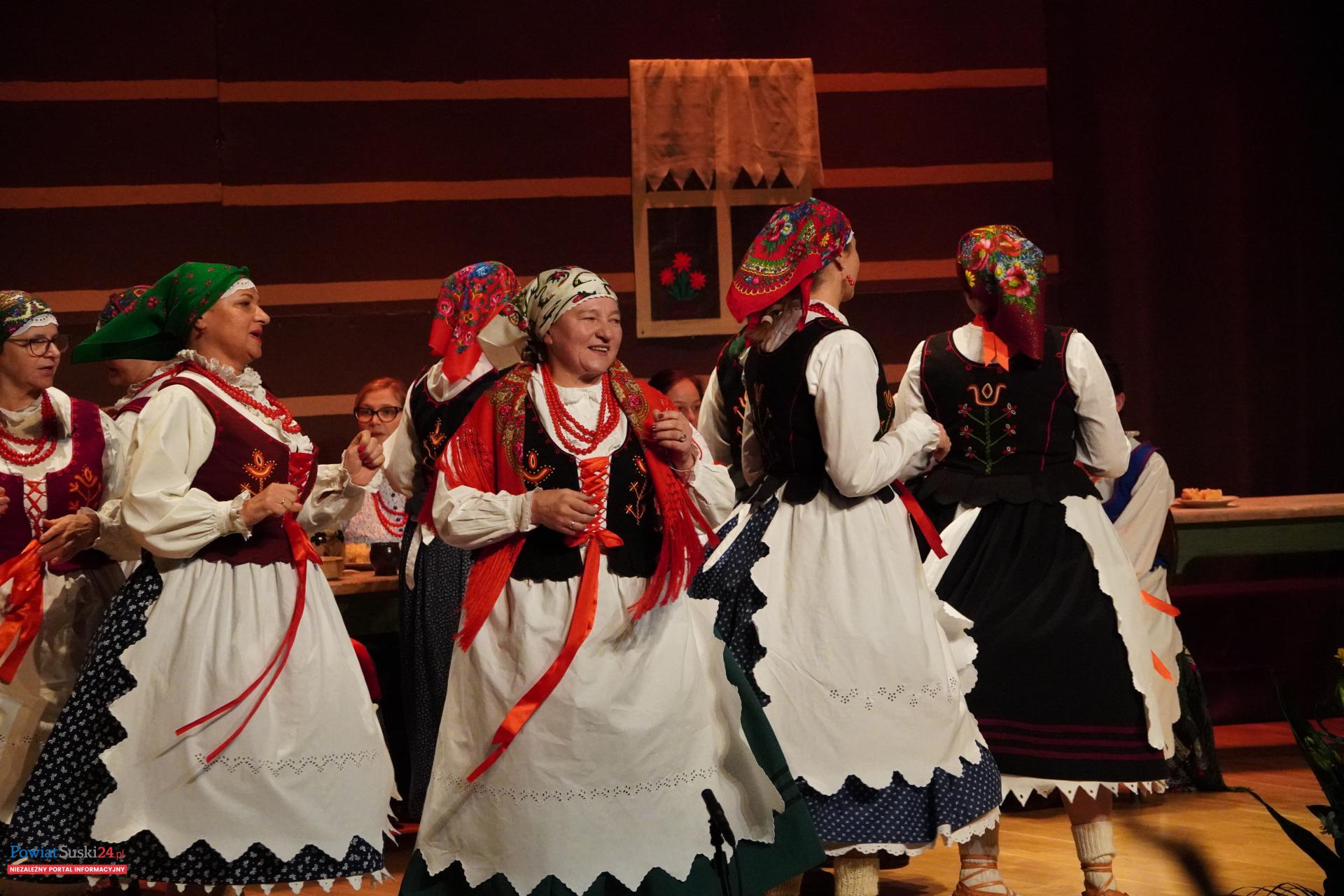 Po wystąpieniach kierowników i prezentacji osiągnięć zespołu Regina Wicher zaprosiła publiczność do obejrzenia widowiska obrzędowego. Po słowach: „A teraz przeniesiemy się do karczmy…” odsłonięto kurtynę i rozpoczął się pełen humoru i dynamiki spektakl z udziałem całego zespołu „Ziemia Suska”. Finał, w którym „pali się sopa”, wywołał żywą reakcję publiczności.
