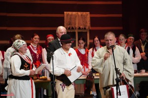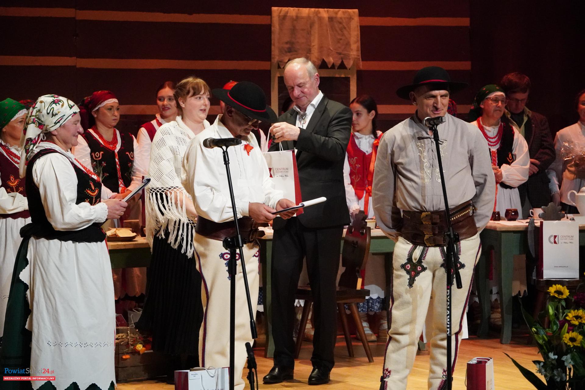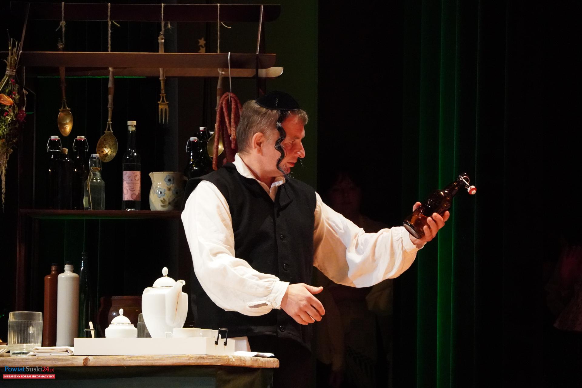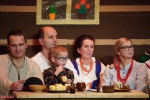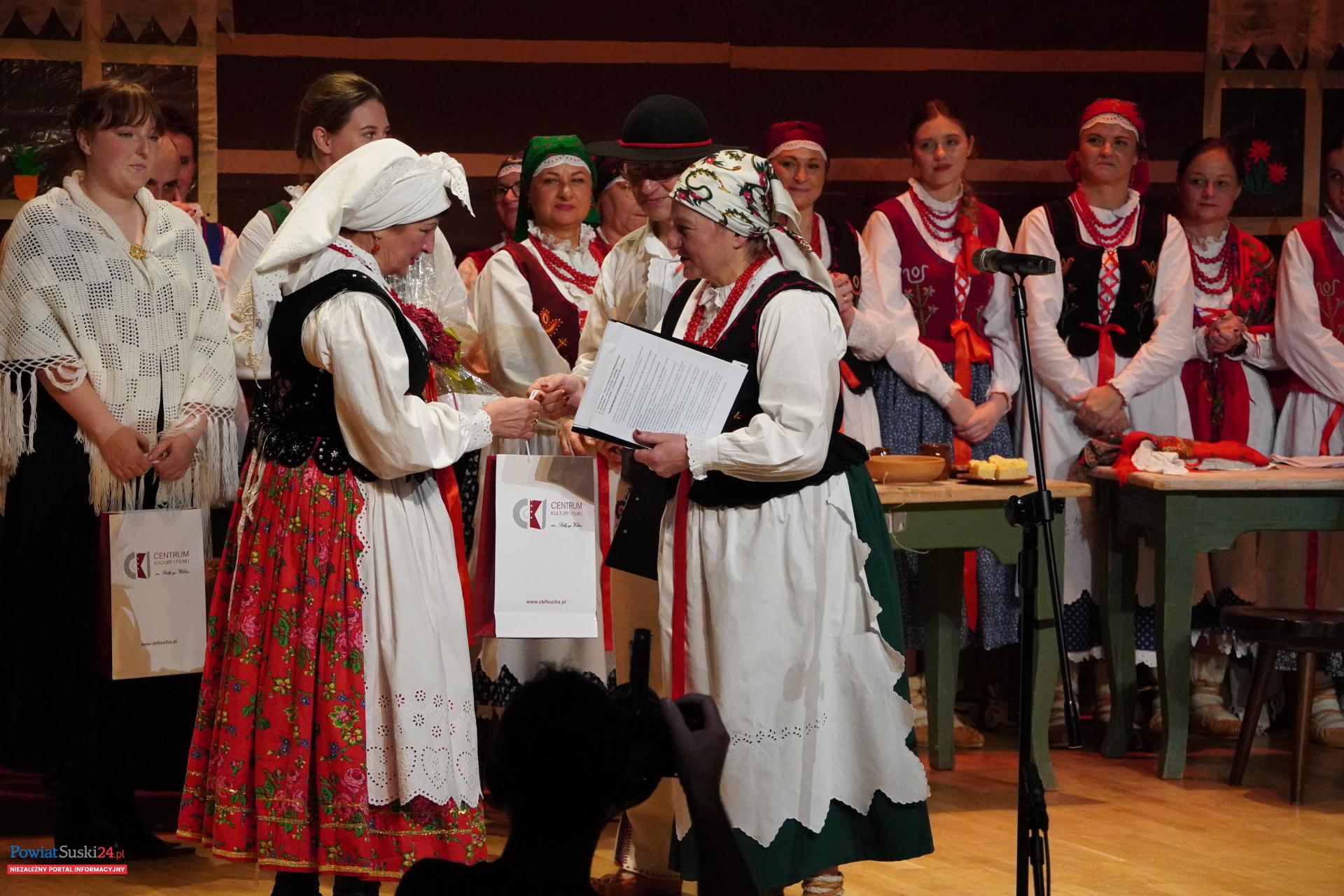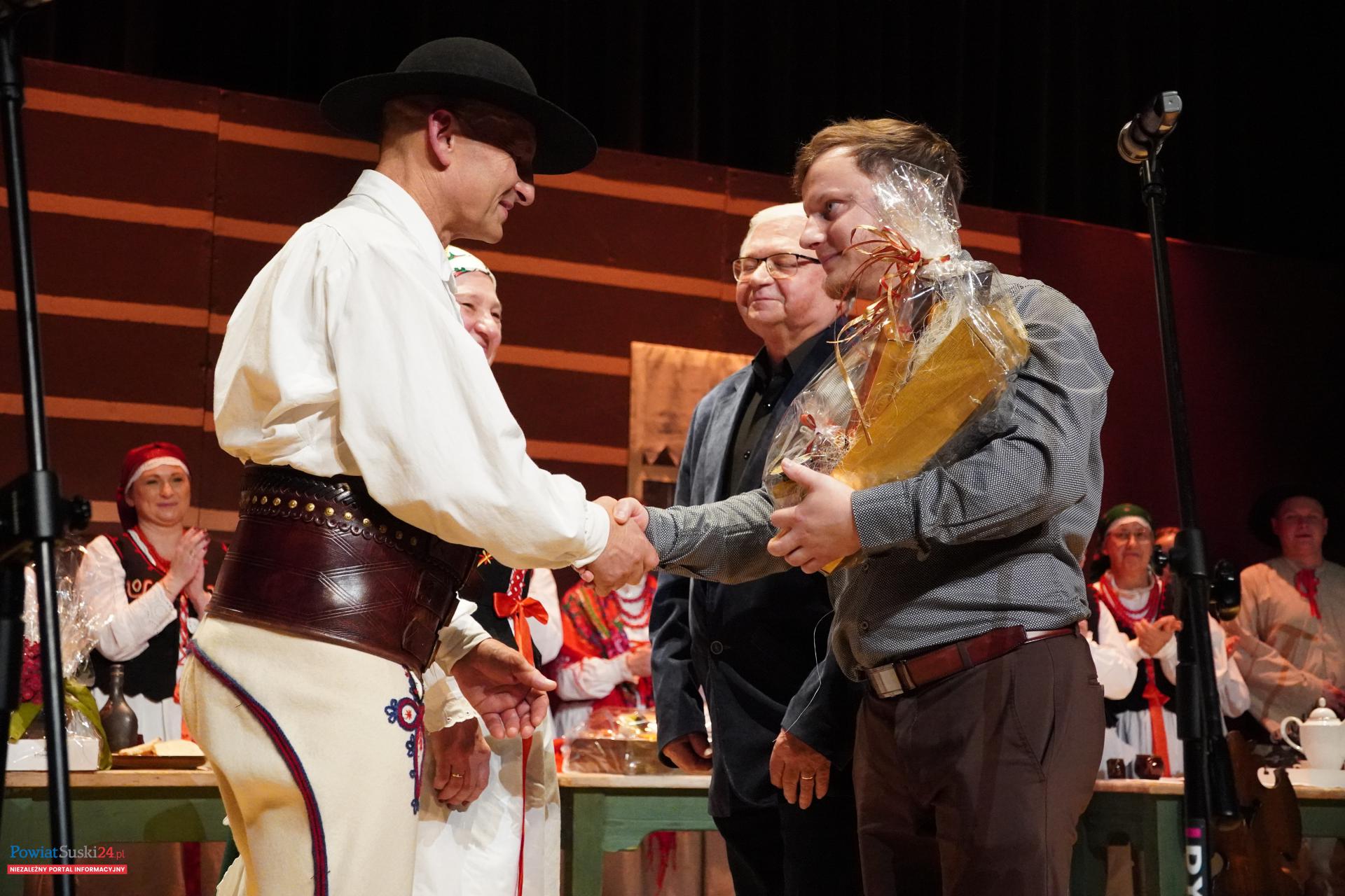 Po wystąpieniach kierowników i prezentacji osiągnięć zespołu Regina Wicher zaprosiła publiczność do obejrzenia widowiska obrzędowego. Po słowach: „A teraz przeniesiemy się do karczmy…” odsłonięto kurtynę i rozpoczął się pełen humoru i dynamiki spektakl z udziałem całego zespołu „Ziemia Suska”. Finał, w którym „pali się sopa”, wywołał żywą reakcję publiczności.