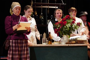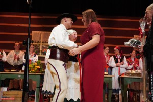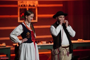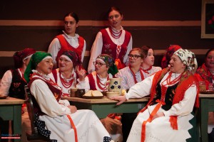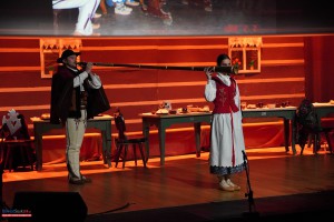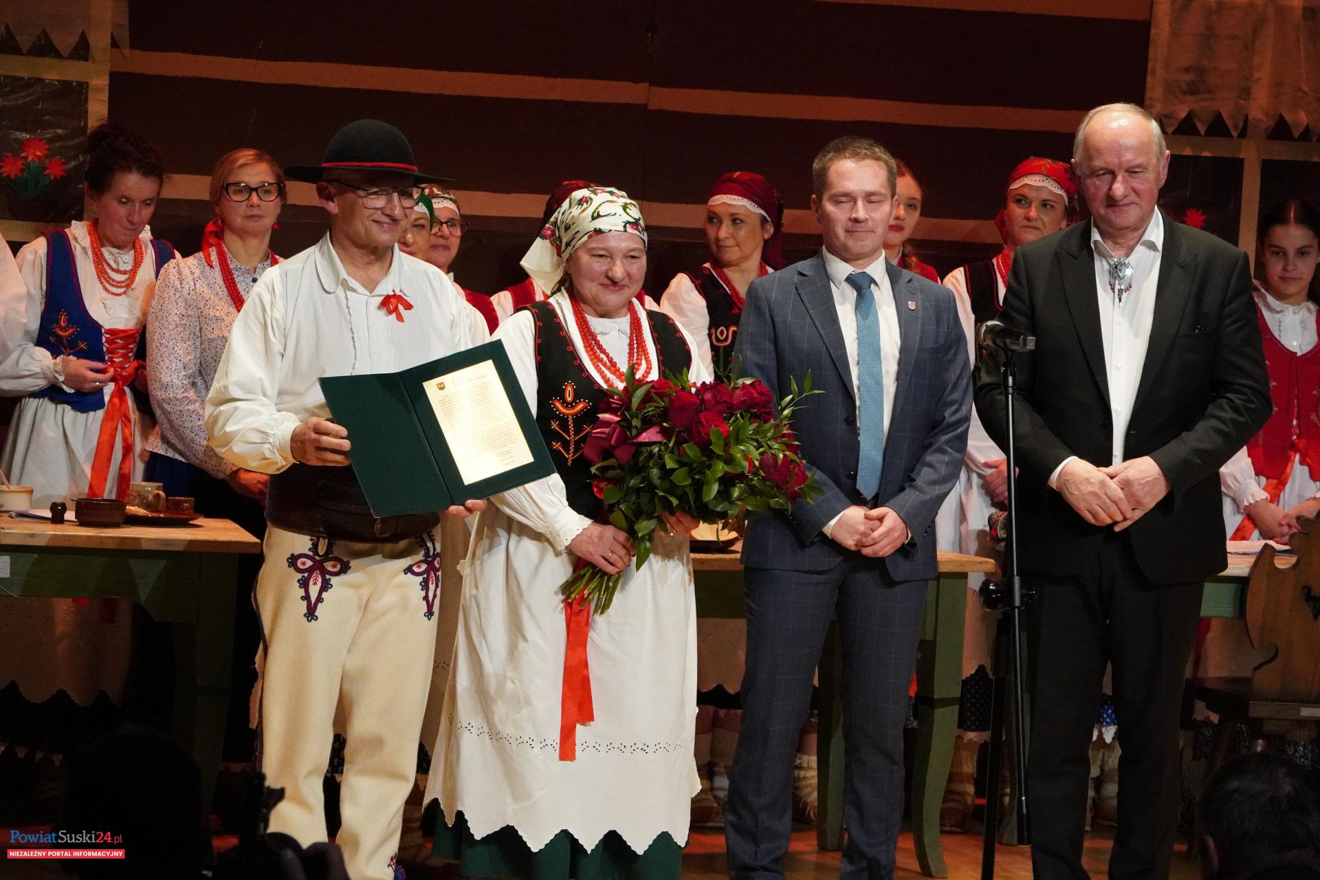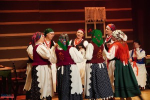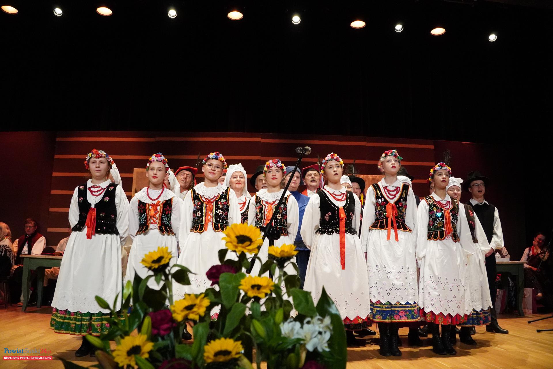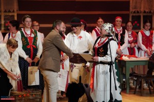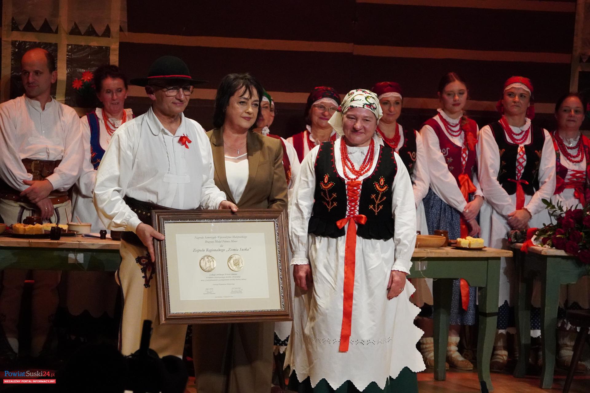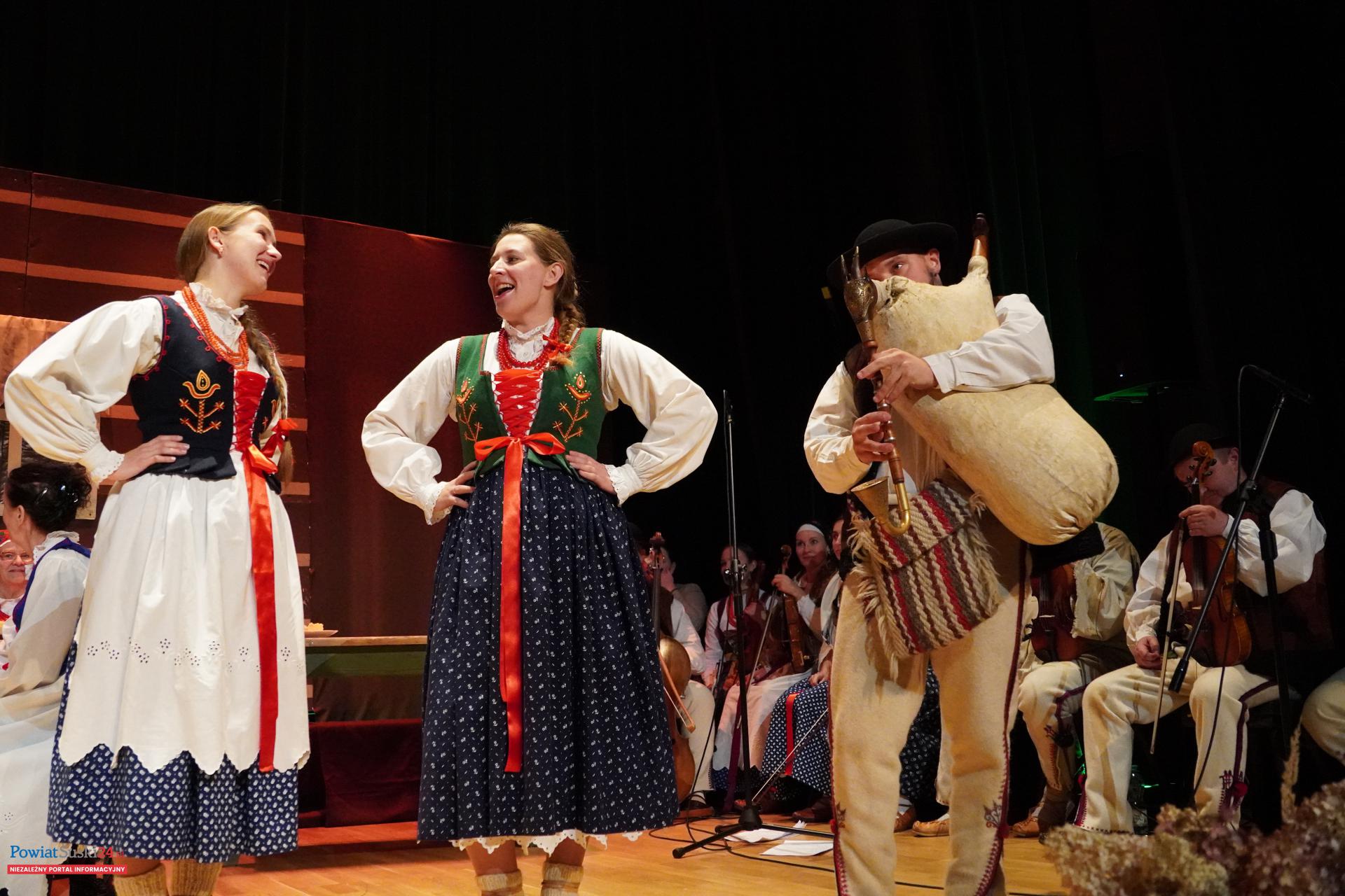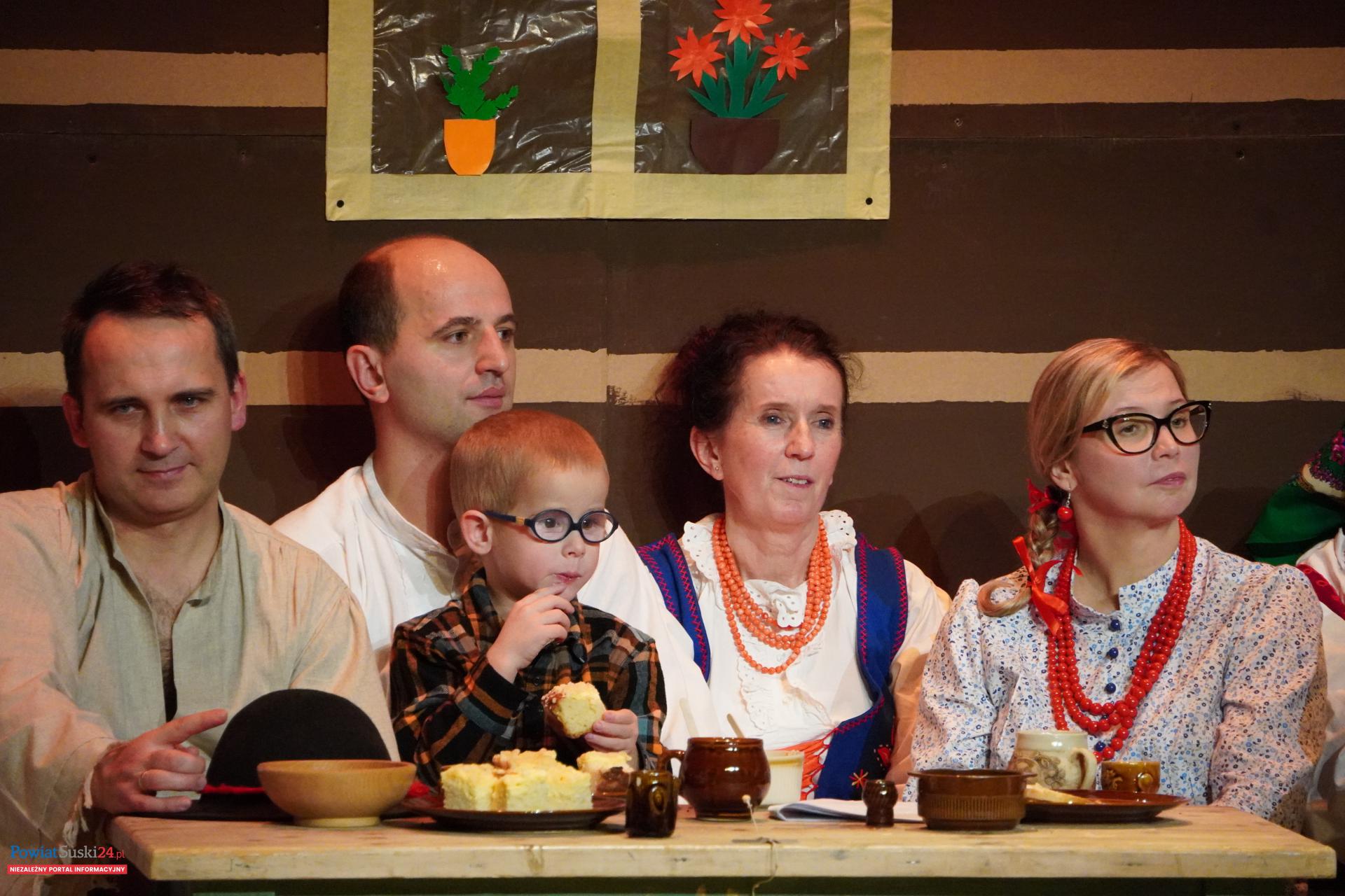 Po wystąpieniach kierowników i prezentacji osiągnięć zespołu Regina Wicher zaprosiła publiczność do obejrzenia widowiska obrzędowego. Po słowach: „A teraz przeniesiemy się do karczmy…” odsłonięto kurtynę i rozpoczął się pełen humoru i dynamiki spektakl z udziałem całego zespołu „Ziemia Suska”. Finał, w którym „pali się sopa”, wywołał żywą reakcję publiczności.