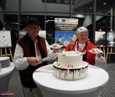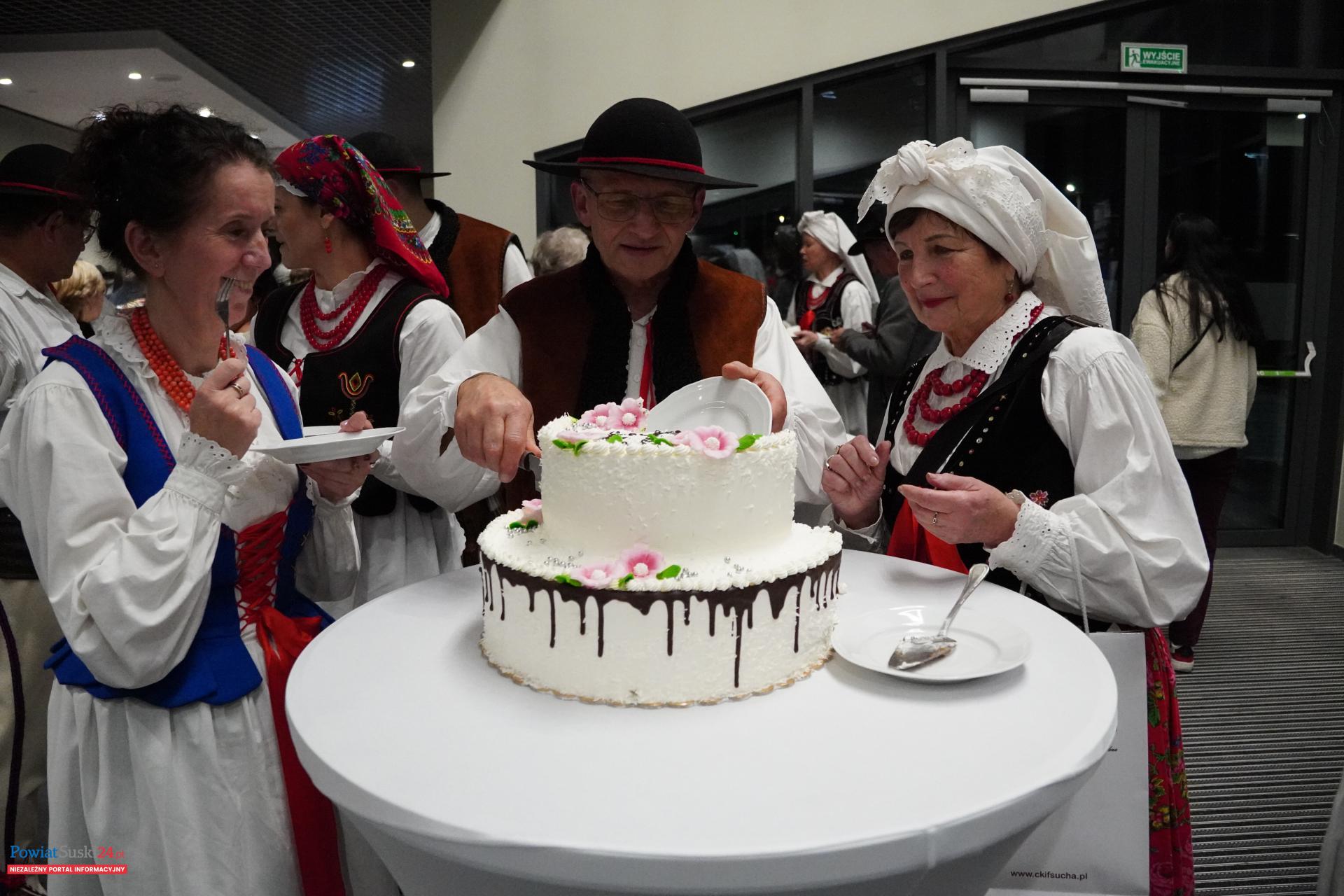 Po oficjalnym zakończeniu Regina Wicher zaprosiła wszystkich do holu na jubileuszowy tort. Przy wspólnych zdjęciach i rozmowach kontynuowano świętowanie dwóch dekad działalności zespołu, który przez 20 lat promuje kulturę regionu i konsekwentnie buduje swoją artystyczną markę.