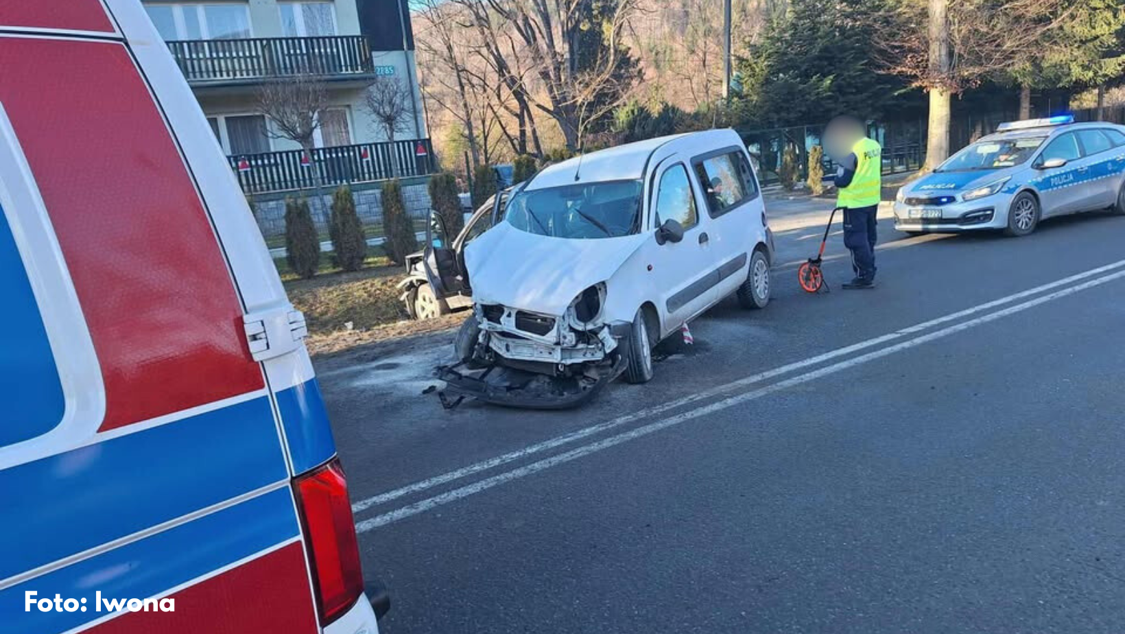 Dziś, (19. 12) po godzinie 13:00, w miejscowości Zawoja doszło do wypadku drogowego z udziałem dwóch samochodów osobowych – marki Renault oraz BMW.