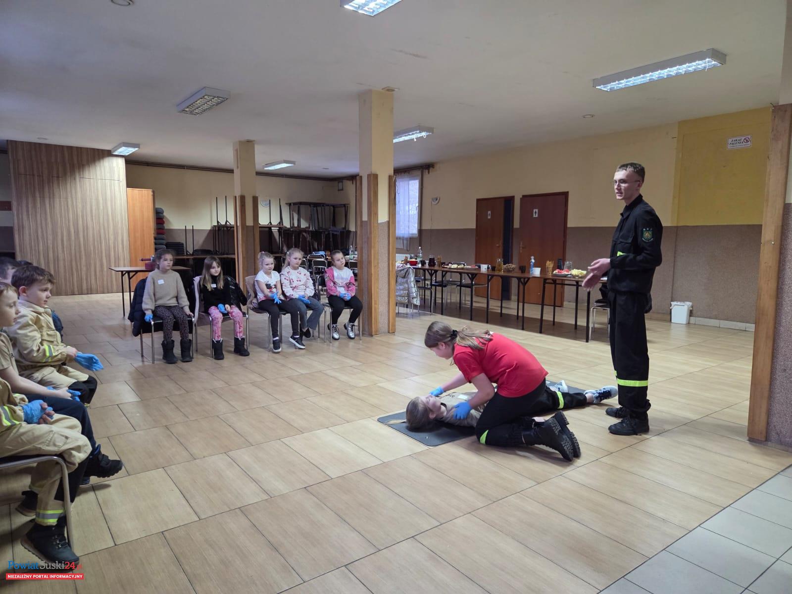W programie znalazły się pokazy strażackie, prezentacja specjalistycznego sprzętu oraz praktyczna nauka udzielania pierwszej pomocy. Strażacy i członkowie MDP w przystępny sposób tłumaczyli dzieciom, jak reagować w sytuacjach zagrożenia, jak bezpiecznie poruszać się po drogach zimą oraz jak unikać niebezpiecznych zachowań podczas zimowych zabaw.