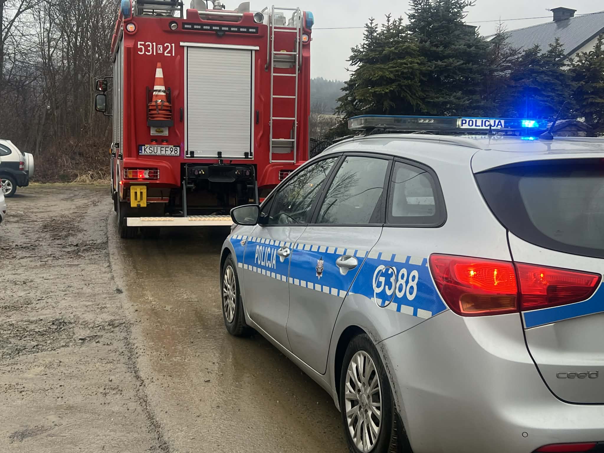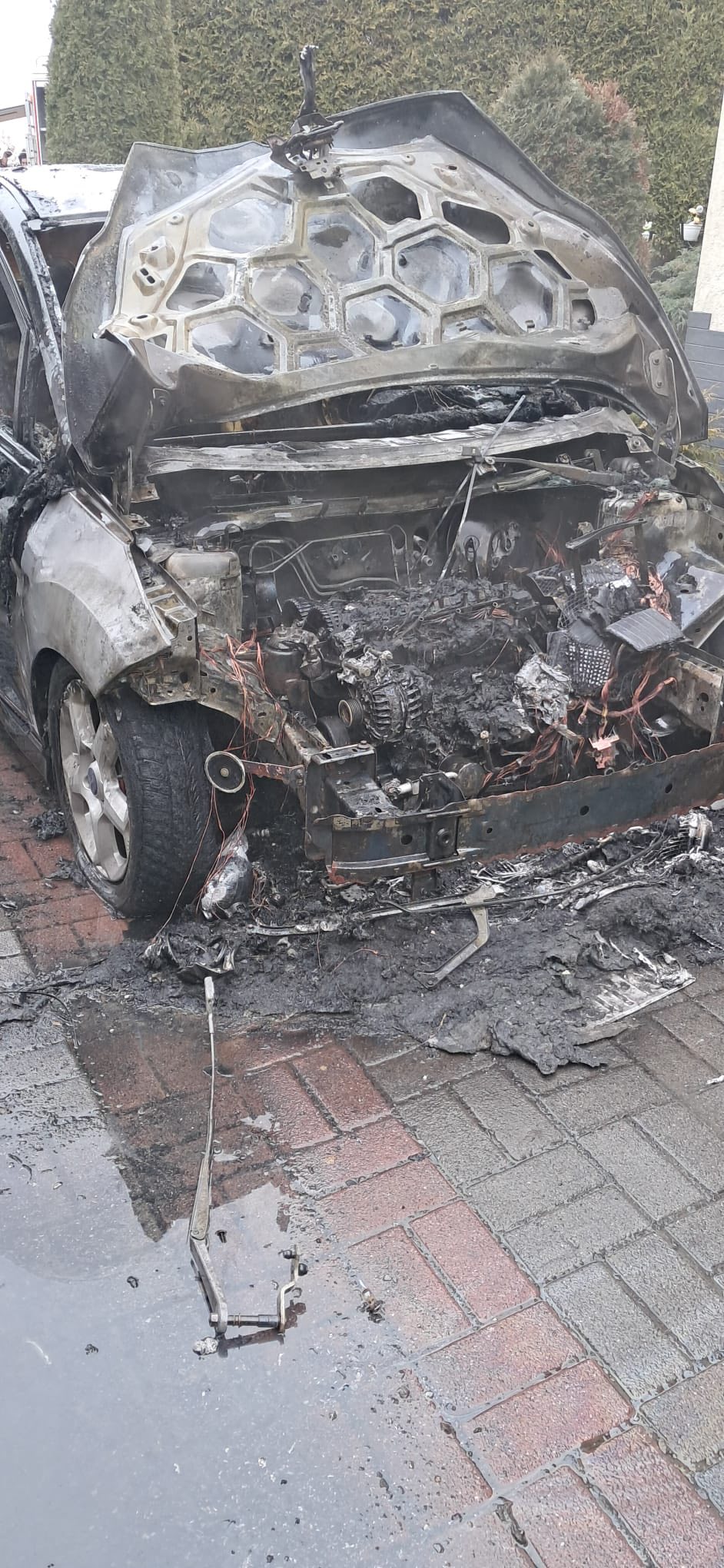 Dziś (14.02.2026) po godzinie 12, w miejscowości Śleszowice doszło do pożaru samochodu osobowego.