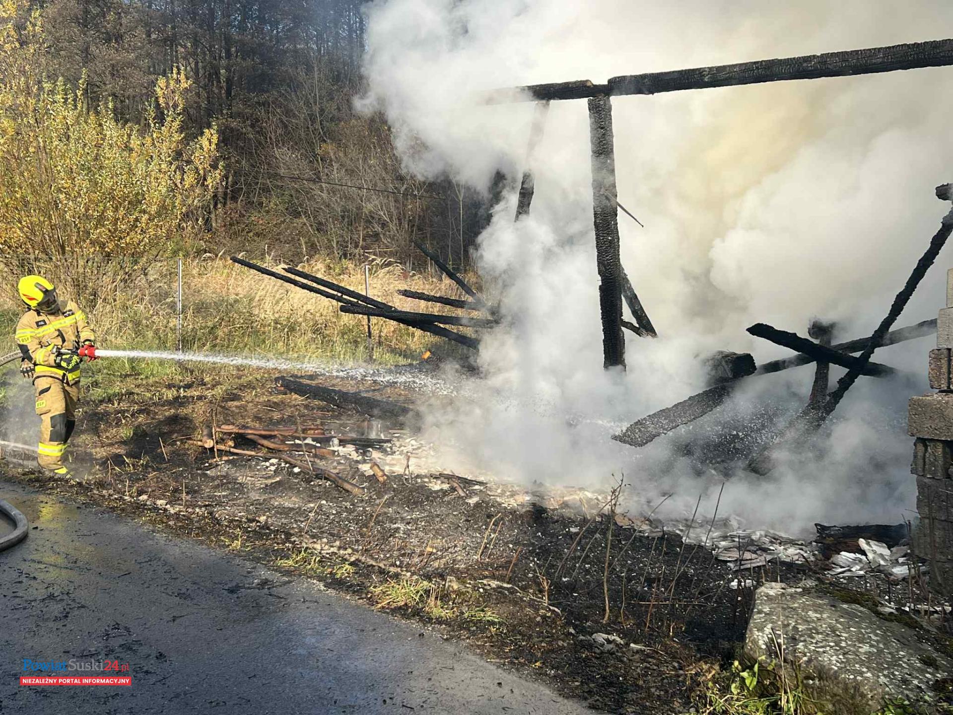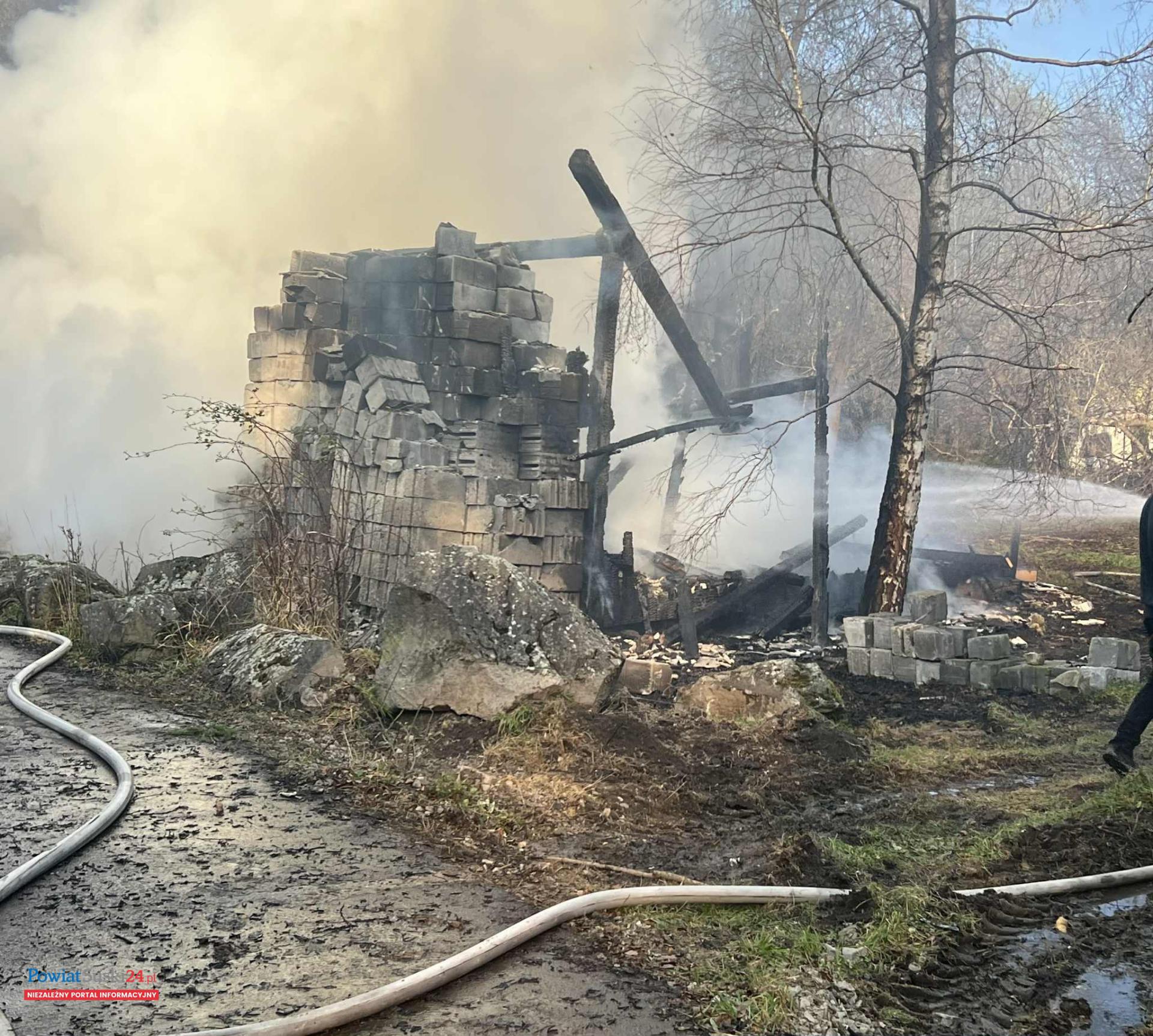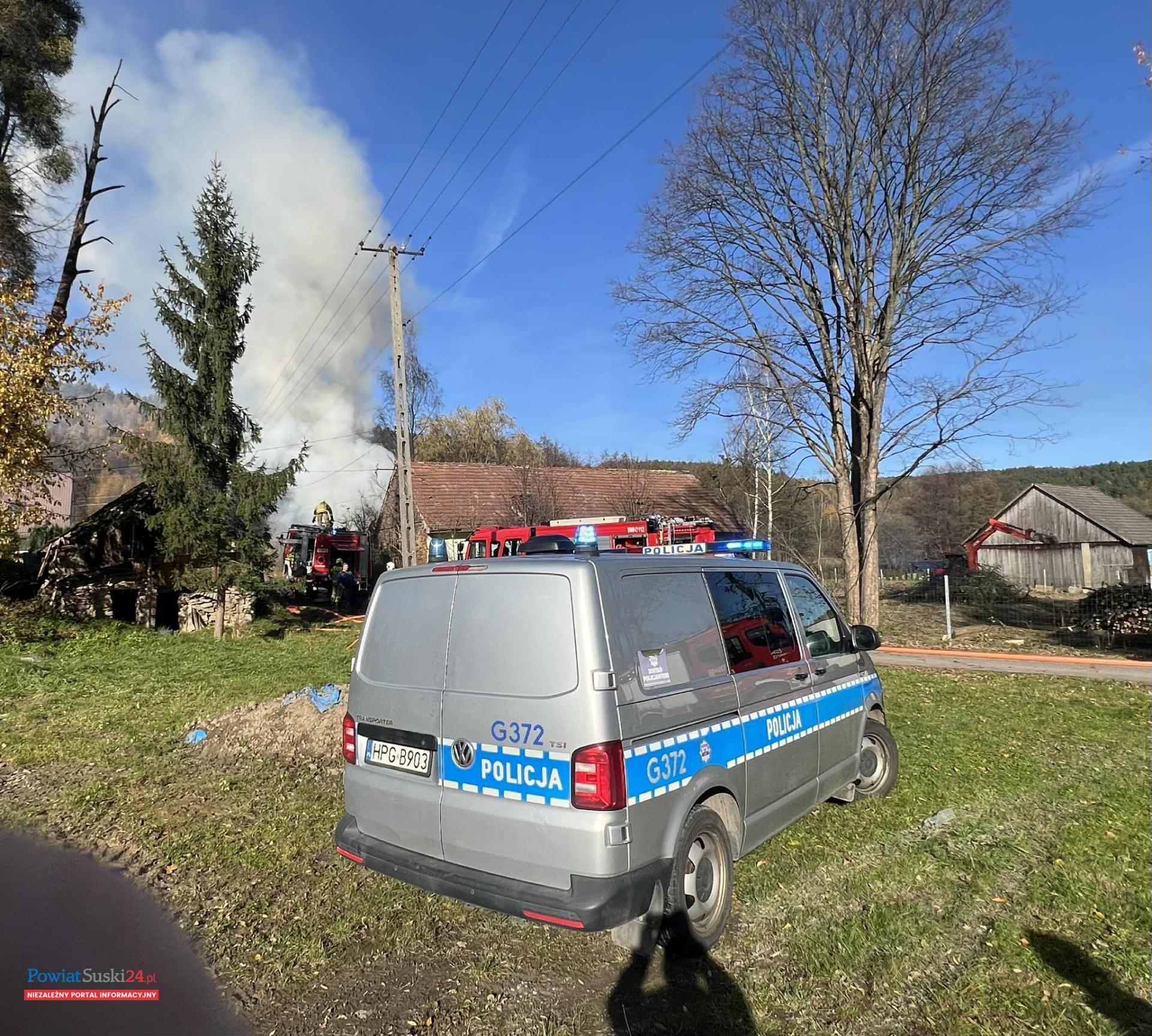 Na miejscu pracował również patrol policji, który zabezpieczał teren zdarzenia i ustalał wstępne okoliczności pożaru.