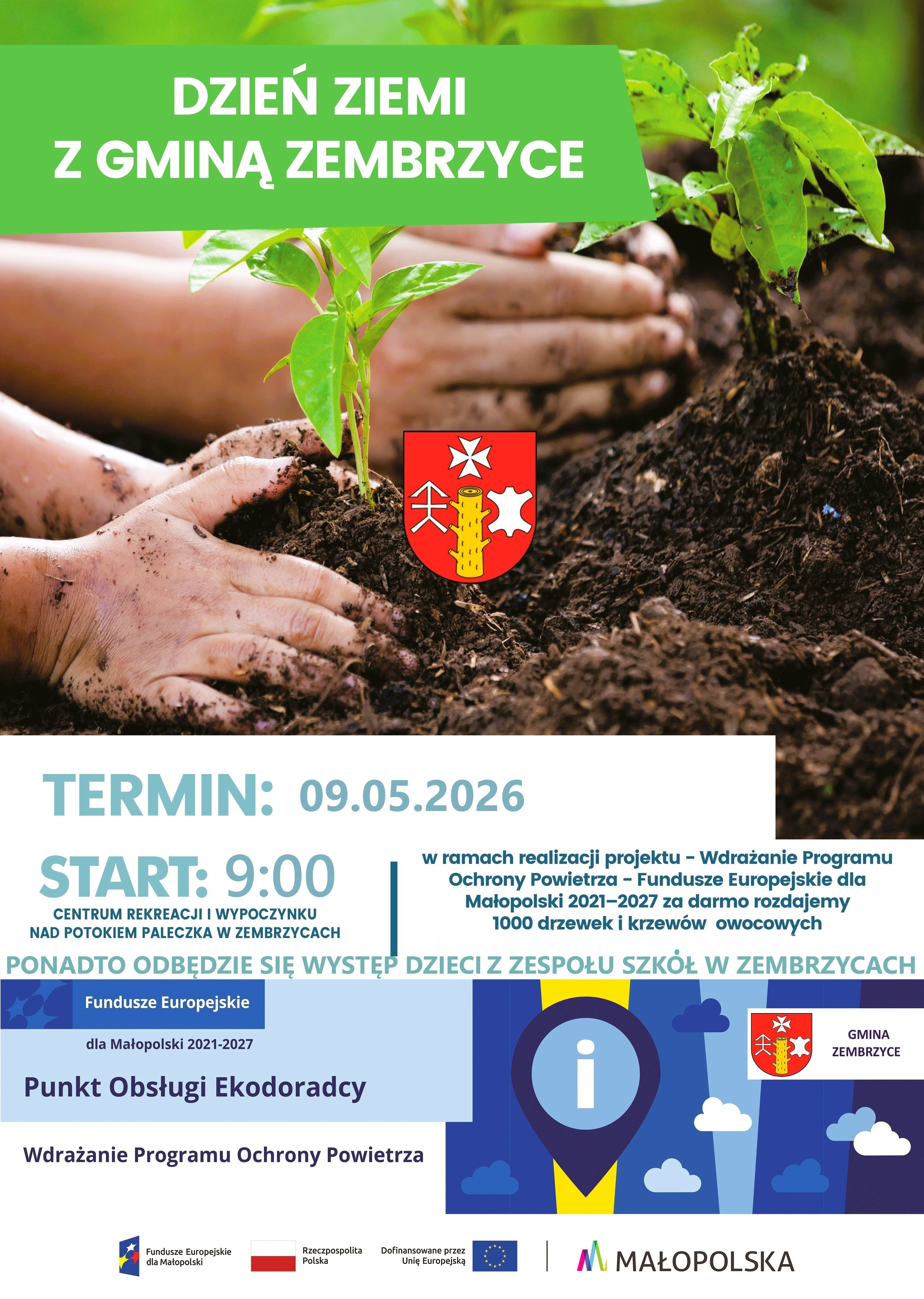 „Dzień Ziemi z Gminą Zembrzyce” realizowany jest w ramach projektu „Wdrażanie Programu Ochrony Powietrza w Gminie Zembrzyce”, współfinansowanego z Funduszy Europejskich dla Małopolski na lata 2021–2027. Całkowita wartość projektu wynosi 569 708,85 zł, z czego 484 252,53 zł stanowi dofinansowanie unijne, a 85 456,32 zł to wkład własny gminy.